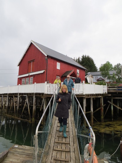 Naturally we went to the boat harbor to see where the family of fishermen set sail in their small boats. We briefly stopped to purchase some Horn Salt. We now know that it is the secret ingredient to make perfect Lefse. It is also the perfect smelling salt to wake up Rocky. I hope we can get it through customs. We afterwards  journeyed to the modern port where farmed salmon are loaded on to ships and trucks for delivery to Costcos everywhere.