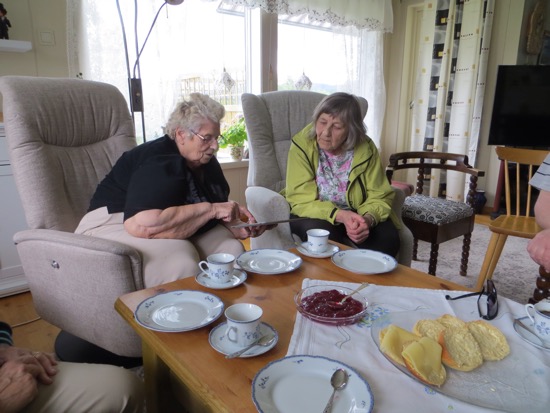 We wanted to see the foundation and location of the family farm Moen Gard. Translated it means roughly Hill Farm. The current owners of the land were quite happy to show us the old granite foundation upon which part of their new house is built. I wandered around and took pictures of the site that we see in the old family pictures. Of course, we were invited in for cake, sandwiches and coffee. Afterwards we toured the studio of the crafty couple with aged bodies. They are still creating works of wonder at well into their 80’s. We bought some great pieces. The location of purchase made them even more special.