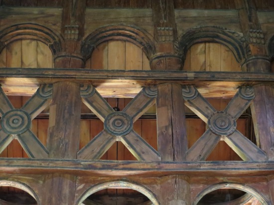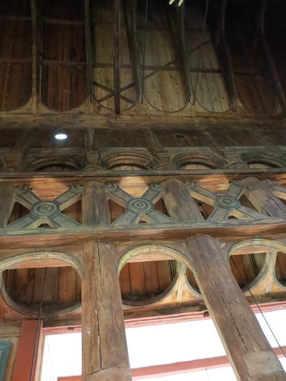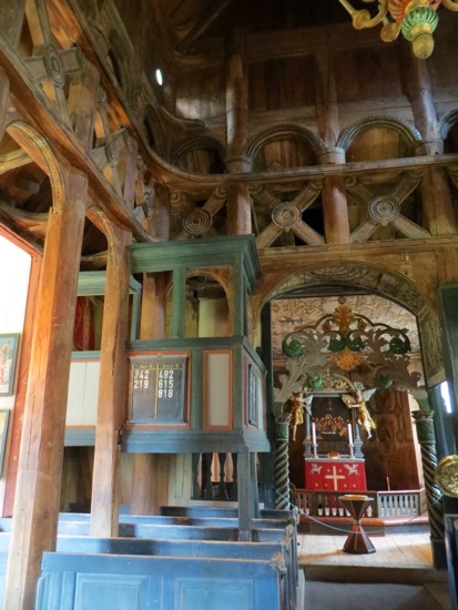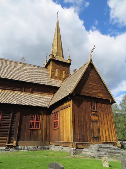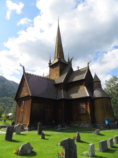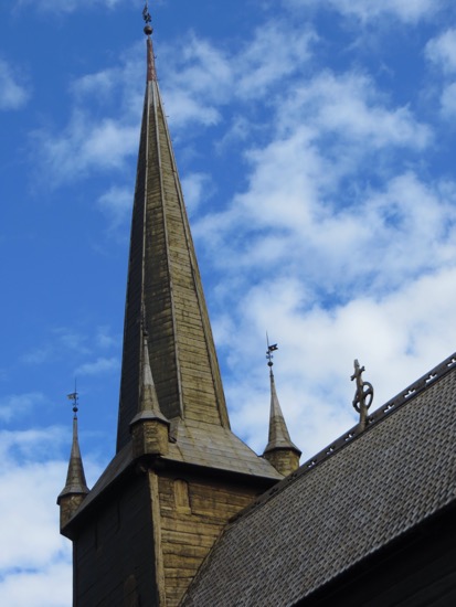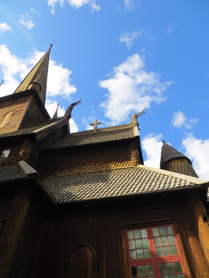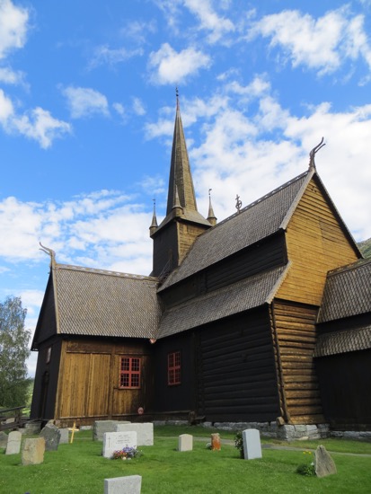 The stave church in Lom was build around 1150. That makes it a 900 year old wood building that has survived. At one time there were hundreds in Norway, now there are a few dozen. We found out later that our proprietor’s family has been attending services since its construction. That must be some kind of record. Anyway, a stave church is constructed of wooden planks positioned upright into slots in logs below and above. They are all wood except for the rock foundation. The pictures show the beauty.