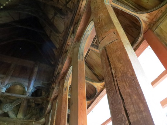 Originally Catholic, the church became Lutheran during the Reformation. It then need remodeling. Pews were constructed for the first time to allow the parishioners to sit during the long sermons. I didn’t see any cushions. I was too busy trying to figure out how they built the edifice. The paintings were homespun but certainly got the Christian message across to the congregation. The organ was donated by Lom immigrants to America. It was a moving place of worship. You could even look past the dragons that kept away evil spirits in the same way as the stone gargoyles down south in France.