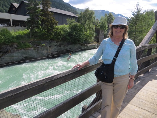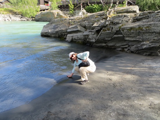 We wandered around a while and found the local zip line. Peggy wasn’t up for it. I would have done it if she would have. Found some sand in Lom where the Leirdalen River empties its glacial brew into a lake.