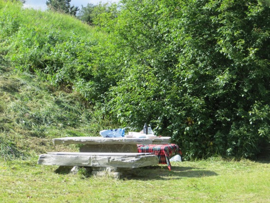 We decided to eat simply and BBQ at the Gard. We found sausages and salad but no beer. Beer sales are forbidden after 6pm on Saturdays and never on Sunday. We ate our humble meal in company with a very friendly cat who always stays close to wherever the food is found. The room was comfortable and we slept well on the farm.