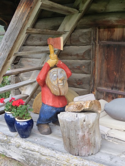 We reached Lom and our lodging at Kraal Gard. It was obviously a farm. Our youthful host greeted us and explained that his family had continuously farmed this plot of land for 900 years. The place was authentic logs and ancient with modern plumbing. Alas, we had to share the shower. Peggy had been looking forward to some bath privacy and was bummed. She cheered up a little as we headed into Lom.