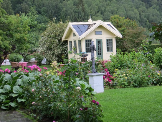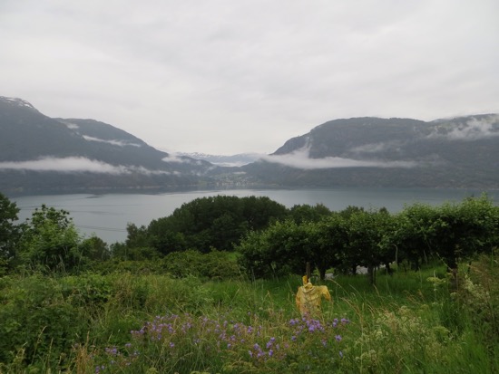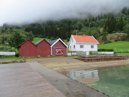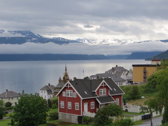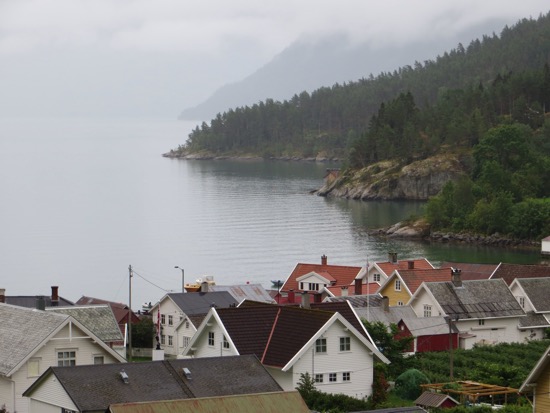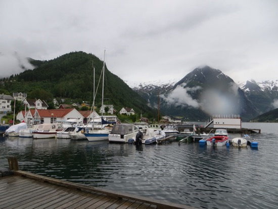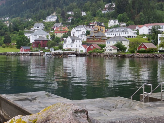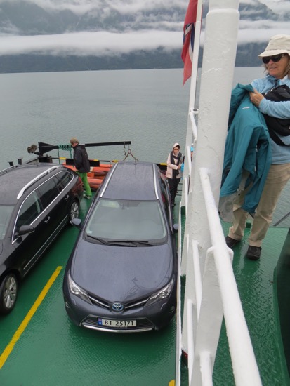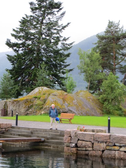 From Urnes we got the ferry to Solholm. We walked around the cute harbor before hitting the road. A short drive got us to another ferry. We stopped for a picnic while it wasn’t sprinkling. Showers were on and off but didn’t slow us down. Arrived in Balestrand around 2 and checked in. The place met Peggy’s standards. We spent the afternoon seeing everything in the town.