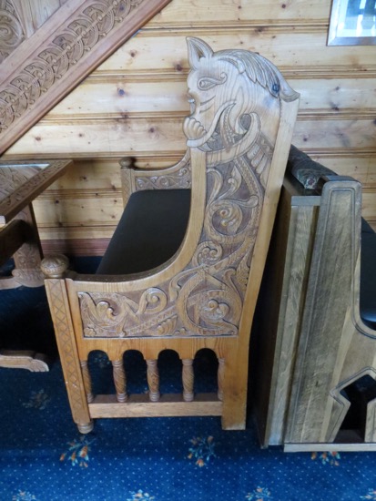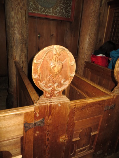 He described the acoustics and lighting techniques to achieve the atmosphere desired for the service. The old Bishop’s chair dates from the time the church was constructed. We couldn’t try it out. Like in Lom, the pews were added during the Reformation. We liked the touch of adding hearts for the woman’s side. The men got crowns on their pews. I guess there is a message there.