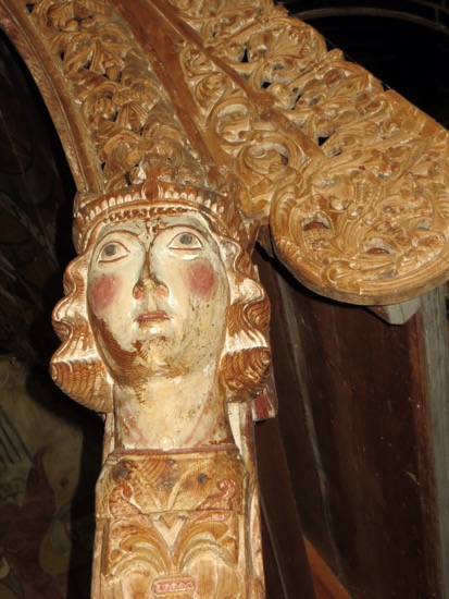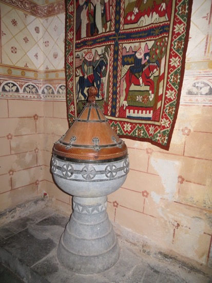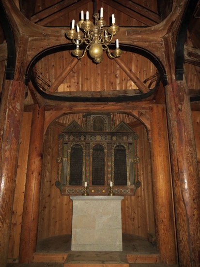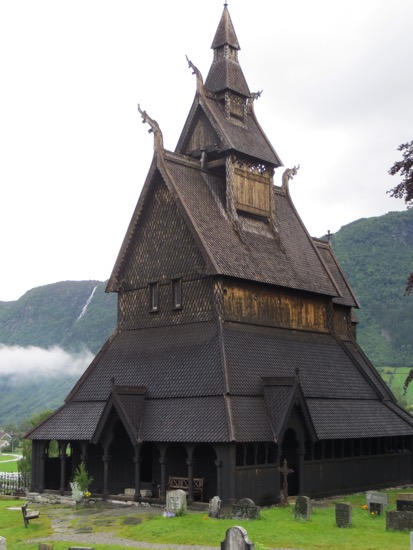 We disembarked in Vangnes and drove to the appropriately named village of Vik. Our initial target was our last stave church for the trip. The Hopperstad church was built shortly after the Urnes church. It was refurbished in the late 19th Century to its 12th Century appearance. That means no pews or windows. What you see is a close approximation of what the Viking parishioners experienced. The interior is stunning despite being lit by only tiny portholes up high on the wall.