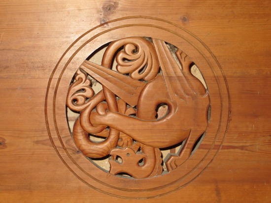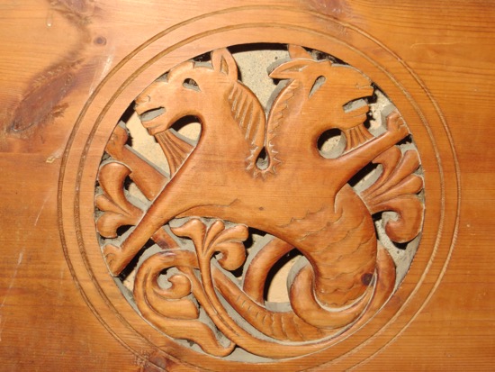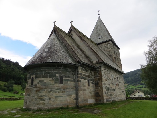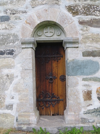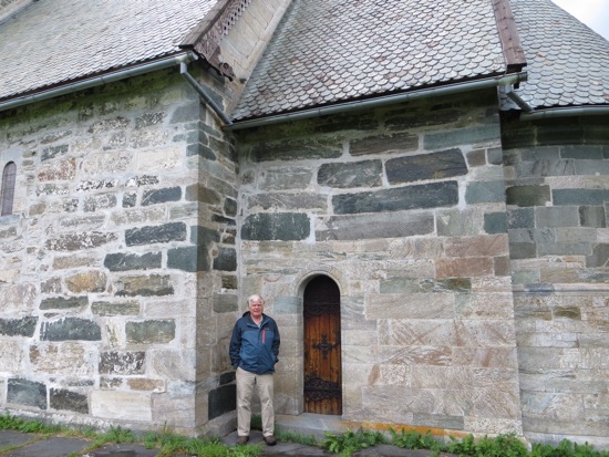 We made one more church stop at the oldest stone church in Norway that is also in Vik. Made of soapstone, it was easy to make rounded, week fitted stones in the 12th Century. The texture is uniquely soapstone. The structure was basic Romanesque but well done. We enjoyed the dragon holding the incense burners and the fine carvings.