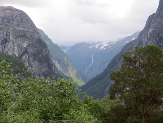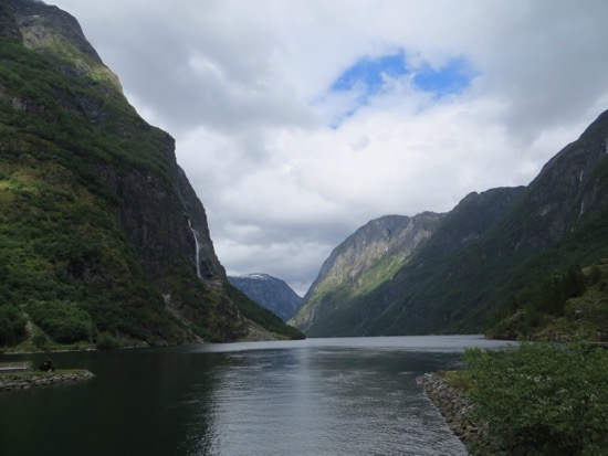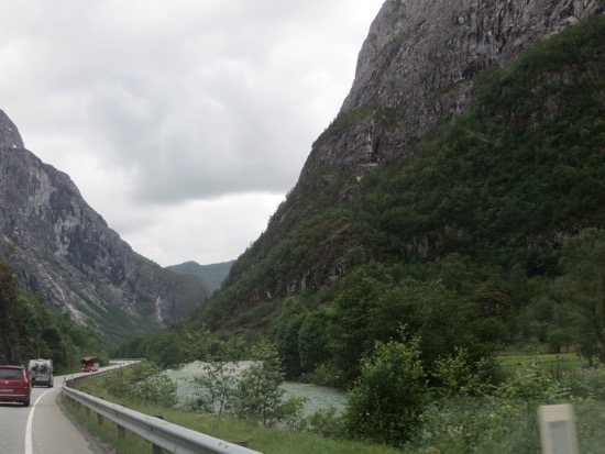 Since it was only noon we headed for Flam at the head of the Sognefjord that we had just left. After a quick picnic in the sun we drove on. We quickly reached a highway alternative that promised a great view. This was an extreme understatement. The drive up was easy. Suddenly we were looking down a Yosemite like setting that would lead to a fjord. The entire area is UNESCO protected. We would soon understand why.