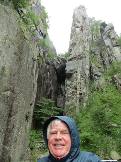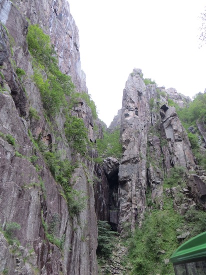 We finally reached the base of Pulpit Rock. We see up,a few hundred feet into the cloud and rain. It was pouring and it was hopeless to see the top. While it was disappointing, I felt somewhat relieved that we were down at the bottom in a boat rather than being swept of the top by the hurricane force winds. I may be exaggerating a bit but not much. The tour boat captain tried to wait but to no avail. We left sad but also relieved that we had made the right choice.