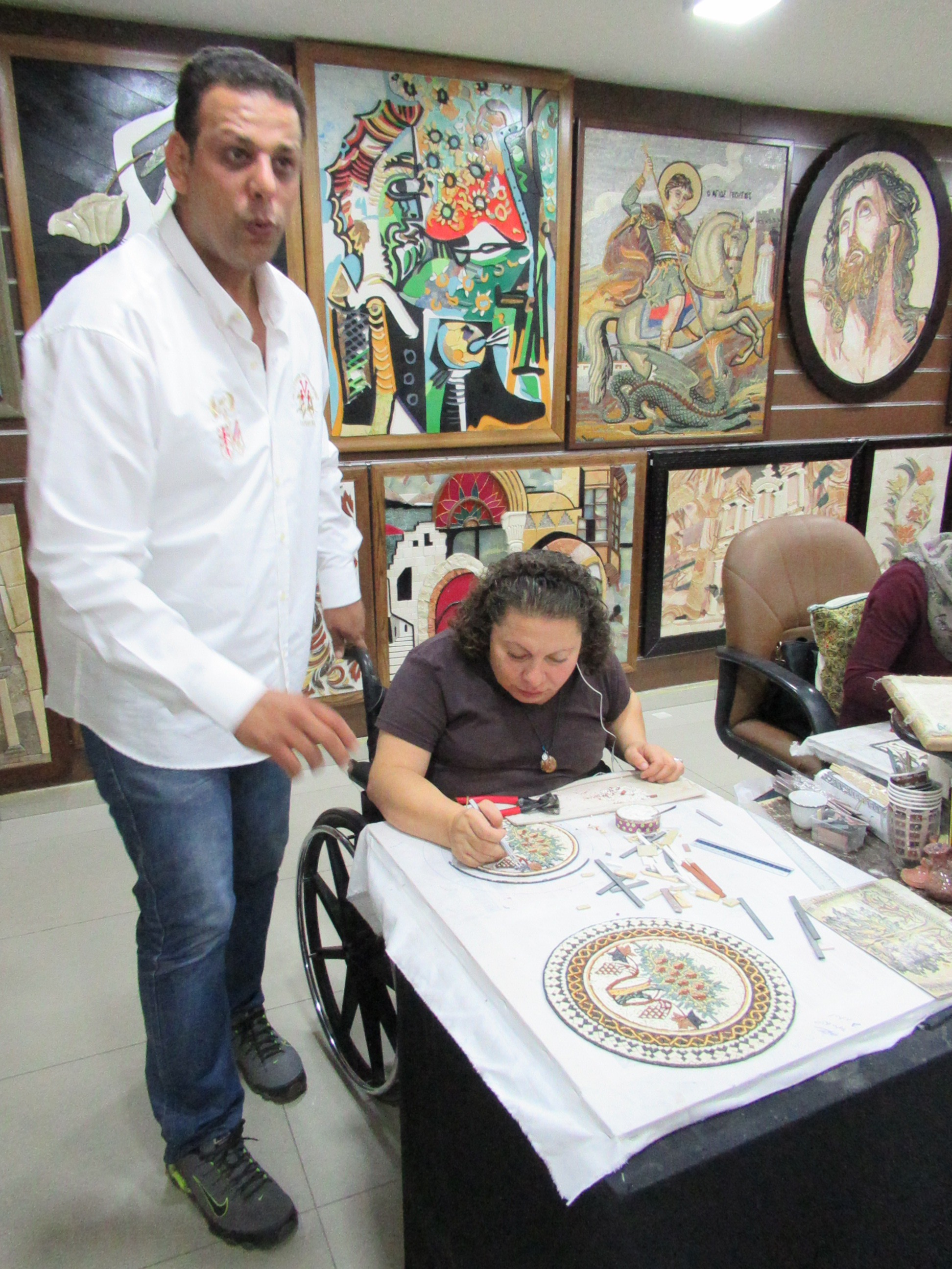 Since Mt. Nebo is a center for the production of tesserae mosaics, we stopped at a local workshop and sales room. The craftsmen and craftswomen have disabilities but not in the making of their works. Enjoyed a cup of black tea flavored with sage. But we were priced out of market for the artwork. We carefully wound down the mountain to the level of the Dead Sea some 3,000 feet under the summit of MT. Nebo.