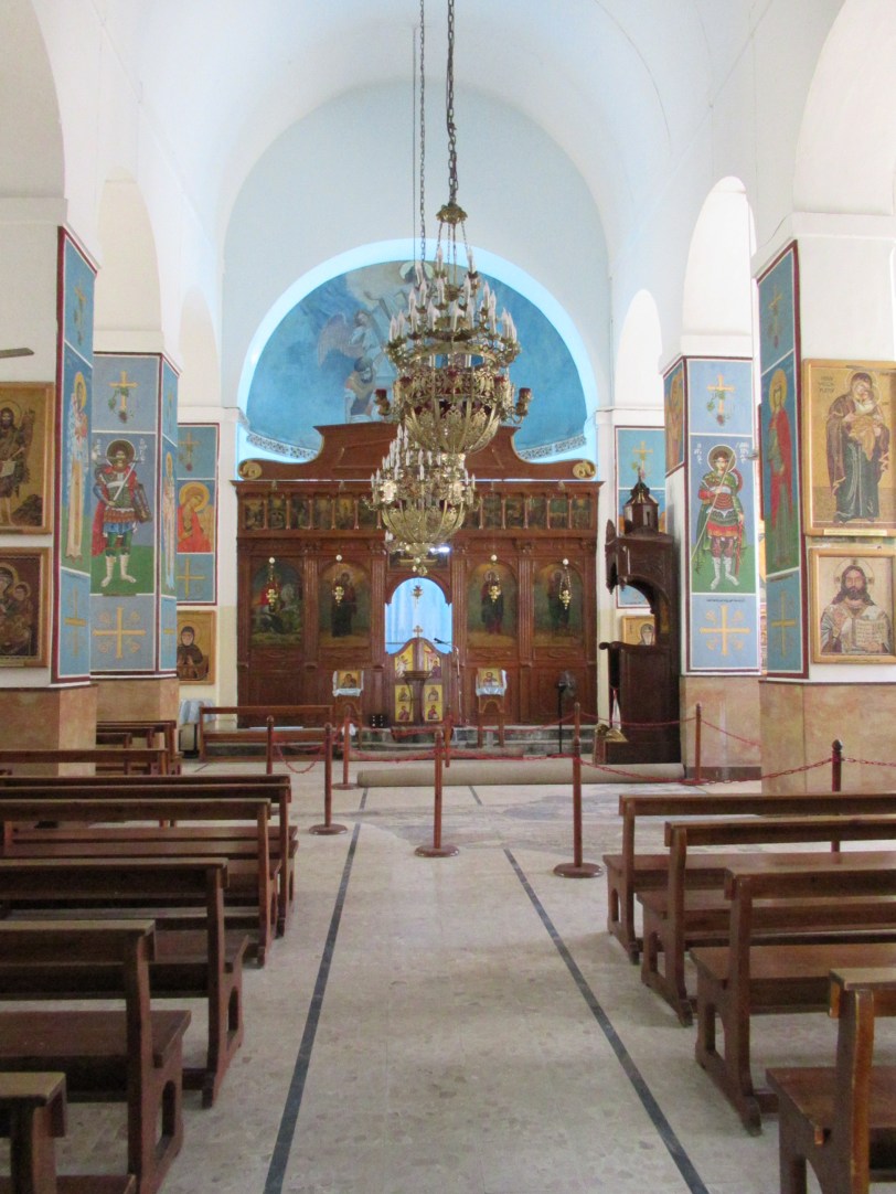 Enjoyed a peaceful breakfast before mounting up and heading out of Amman. Traffic is light because of the voting holiday. Folks sleep in before doing their democratic duty. Our drive to Medaba was pretty short. Now Medaba is not on everyone’s list of sights but a stop to look at the map was valuable. The map in question is the earliest map of the Holy Land in existence.