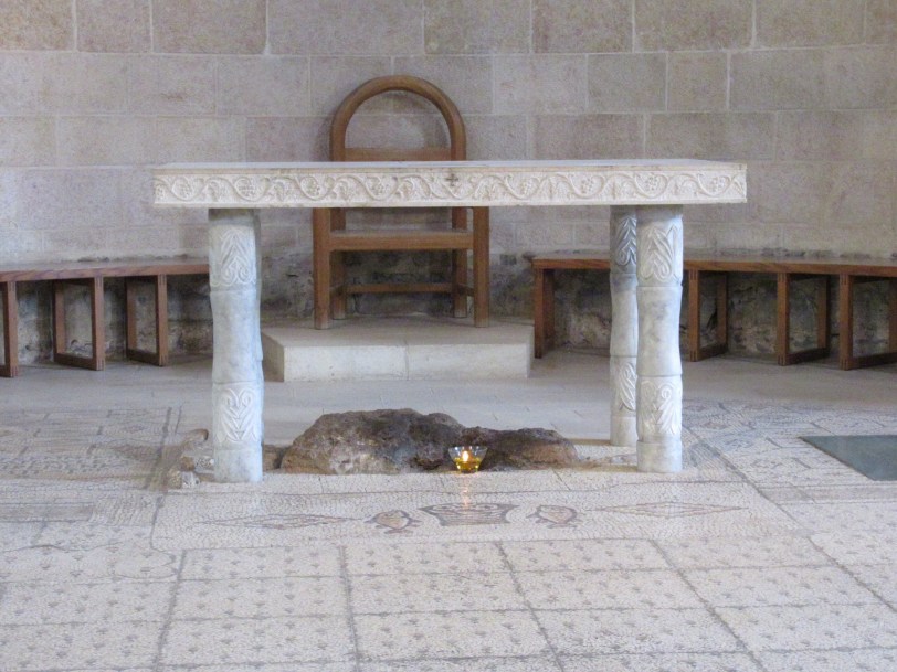 While not on the itinerary the nearby Church of the Primacy of St. Peter on the Galilean shore, is believed by Roman Catholics to be the place where Jesus returned after his Resurrection to help the disciples with their fishing. After a confession, Peter is commanded to “feed my sheep” (John 21:1-24). While the theology may be shaky, the site is wonderful with the ancient