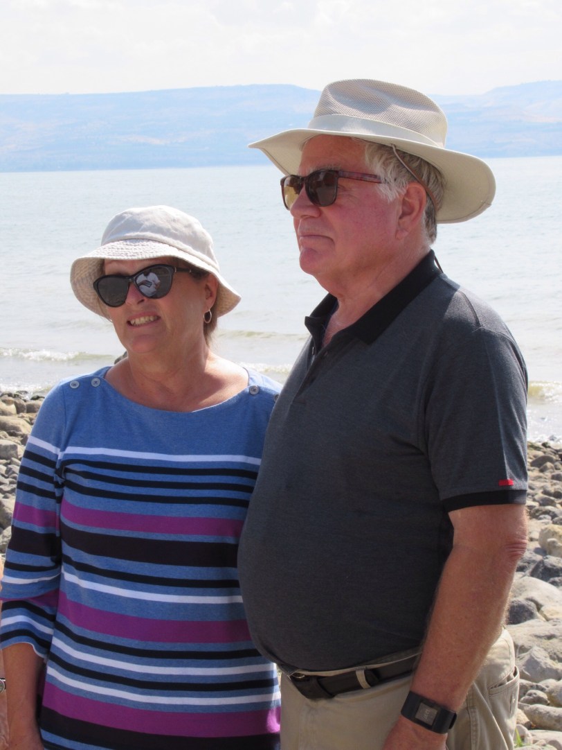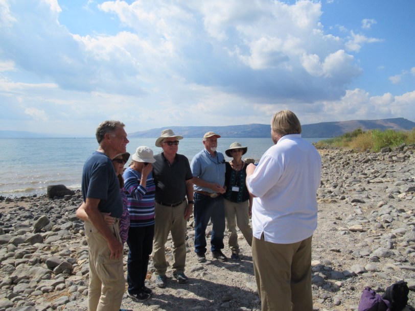 A few feet away lay the Church of the Primacy. It is a big deal for Roman Catholics as it positions The Bishop of Rome, Peter in pole position for leadership of the church on earth. At least that is the Catholic position. It is one of my favorite sites for its simplicity and location at the harbor of ancient Capernaum. The “table of Christ” where he prepared a meal for his Apostles after his resurrection was timeless and perfect even if he never actually used it. It was here that Matt performed his second shepardly duty of the day and renewed the marriage vows of the travelers. The simple service amongst the rocks and pebbles on the Sea of Galilee was moving.