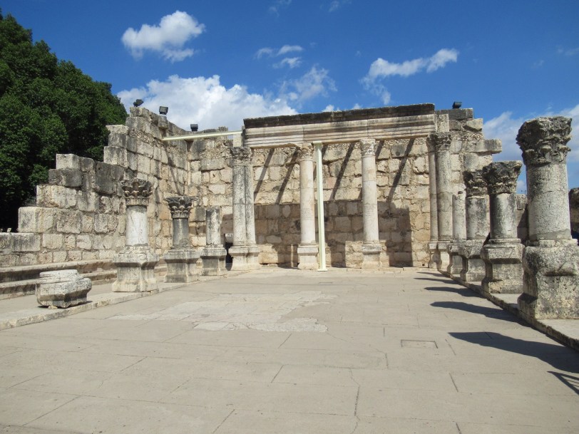 Capernaum, a mile down the road is where Jesus would headquarter for half of his three year earthly ministry. The centerpiece is the Synagogue which was built in the 4th Century atop the first century building where Jesus attended and taught. The house of Peter’s mother in law is near the entrance to the church as is covered by “space ship” looking modern church. The glass for in the church above looks down into what was likely one of the earliest house churches in Christianity. We also chose to talk and read on the shoreline away from the grounds. It was a wonderful feeling and sight. Of course, we know the choice of Capernaum by Christ was not an accident. It lie astride the main highway between the coast and Mesopotamia as well as on the dividing line between Jew and Gentile. Jesus could be amongst the Gentiles or the local Jewish population depending on his purpose. Again, things are fitting together.