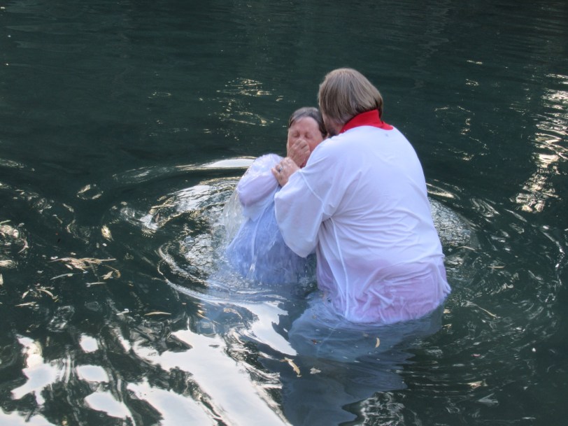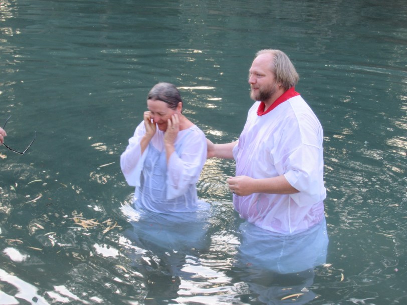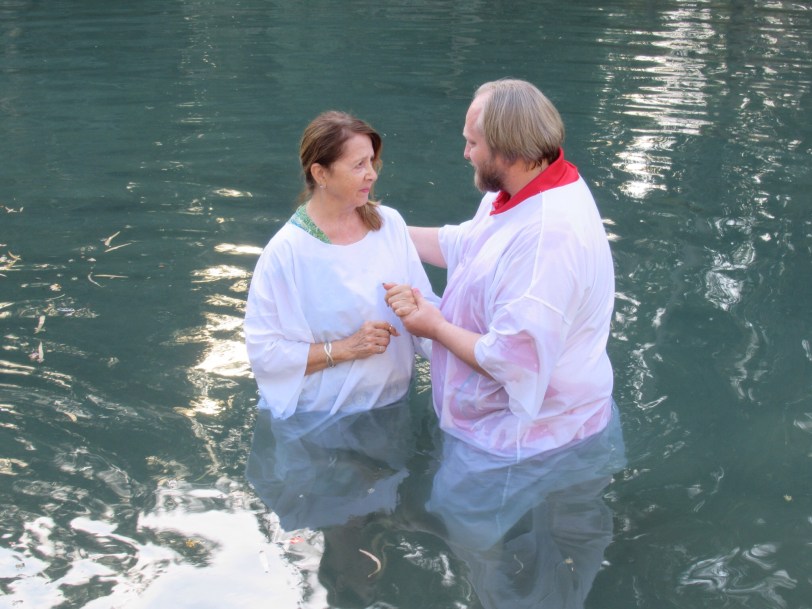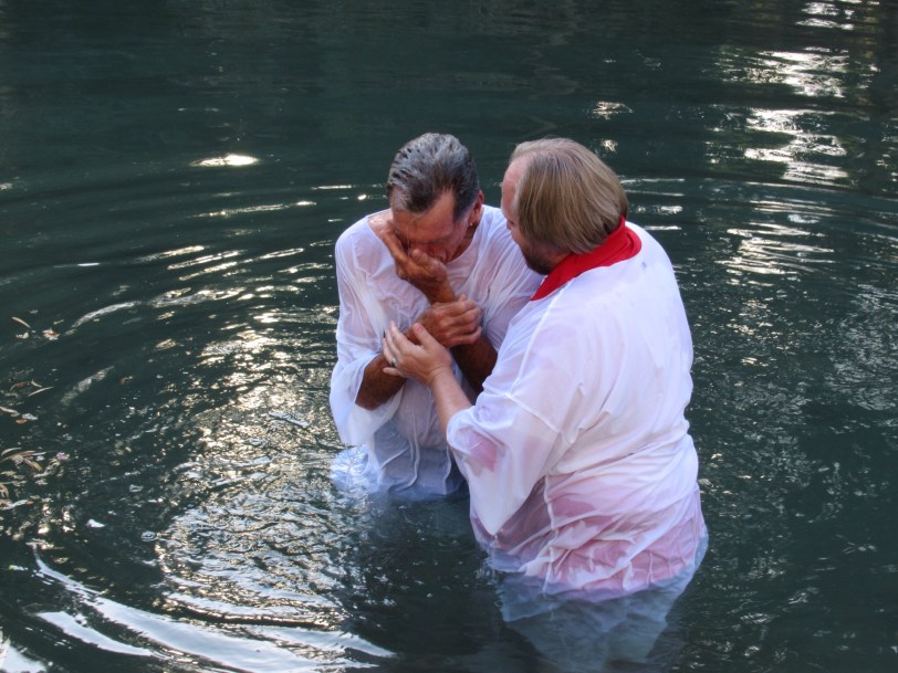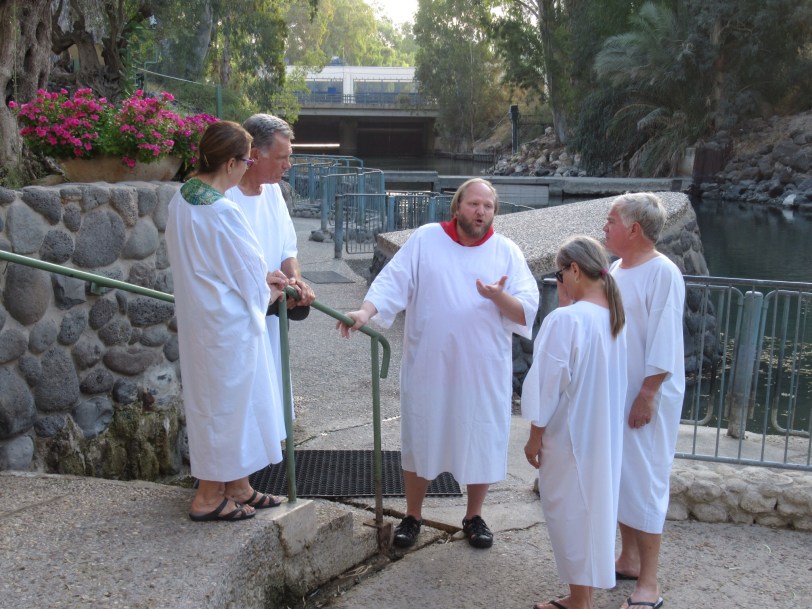 Pastor Matt was gracious in accommodating the wishes of four of us to be baptized this morning. While we all understand that Baptism can be performed anywhere, the idea of declaring your beliefs in the Jordan hold a special value. So Peggy, Sharon, Dick and I donned our rental robes along with Pastor Matt to perform the brief ceremony. Brief though it was, the journey there was a long one. Peggy and I had been baptized as infants and have dutifully renewed our vows hundreds of times. Today was different as it was for Sharon and Dick who had been baptized as children. So we braved the myriad little nibbling fish and kept an eye out for the famous Jordan River musk rats, and made our statement of faith. This was just the beginning of an extraordinary day.