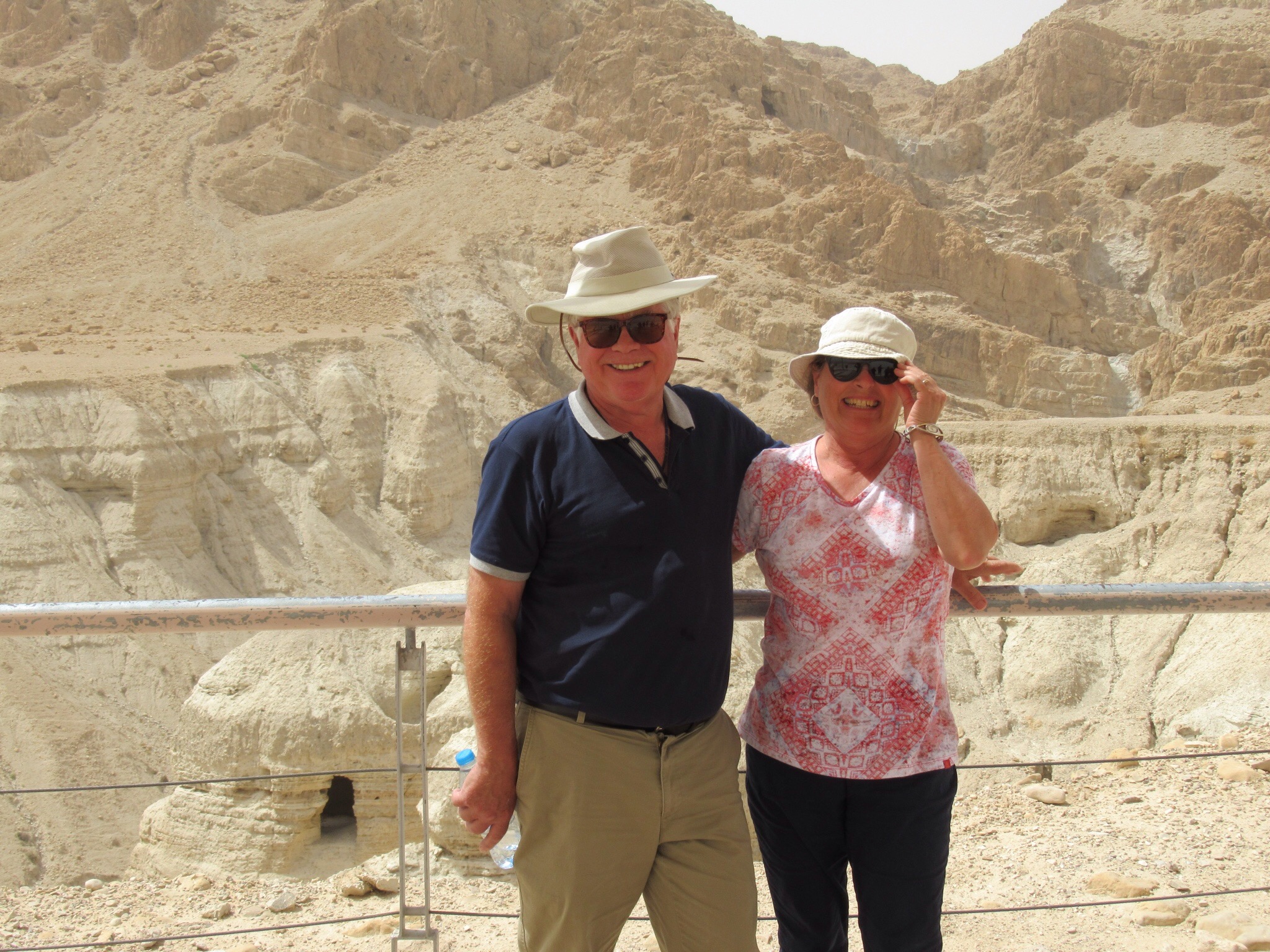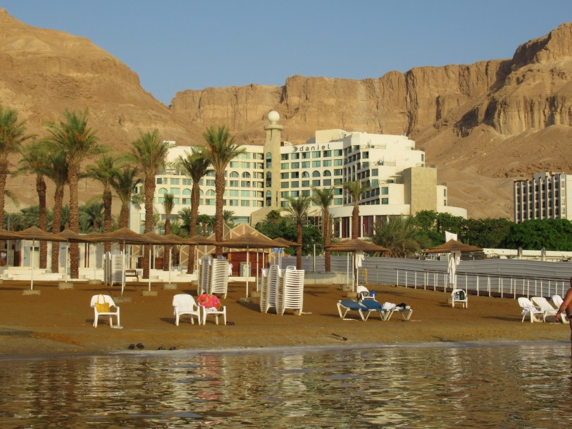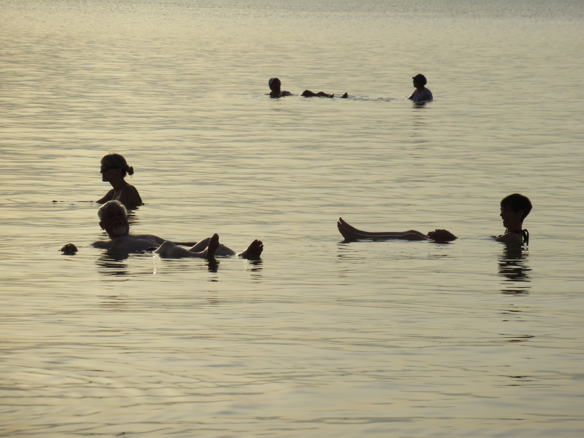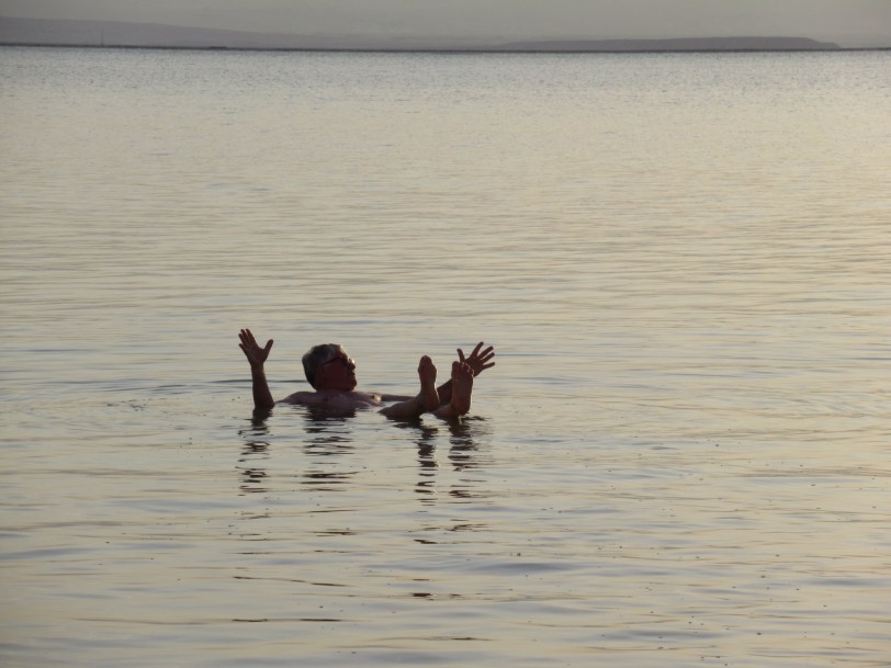 We awoke at dawn to the siren call of the Salt Sea or as it is known today, the Dead Sea. It was too hot yesterday to attempt the desert beach. It was 30 Celcius or 86 degrees at 6:30 AM so we trundled across the street to the beach. Pastor Matt was emerging as we sought to submerge in the water with a 33% salt content. We discovered the strange feeling that it was almost impossible to stand up after floating on your back. The feet wouldn’t go down. My posterior acted as a super buoyant floating balloon. You had to swim almost to shore to get shallow enough to stand. In the mean time the bottom is covered in sharp salt nuggets that have precipitated out of solution. You are part of a grand science experiment. Remember floating eggs in salt water while in elementary school? Of course Peggy and Audrey started collecting large salt crystals. Luckily we lacked a gunny sack or we would have 100 lbs of overweight luggage. It was great fun until the brine started to find its way into body cracks and crevices. You knew when it was time to leave. Peggy and I detoured to the hotel spa to purge some of the salt. After showering and shaving ( you dare not shave right before the salt bath) we joined the others for a leisurely breakfast.