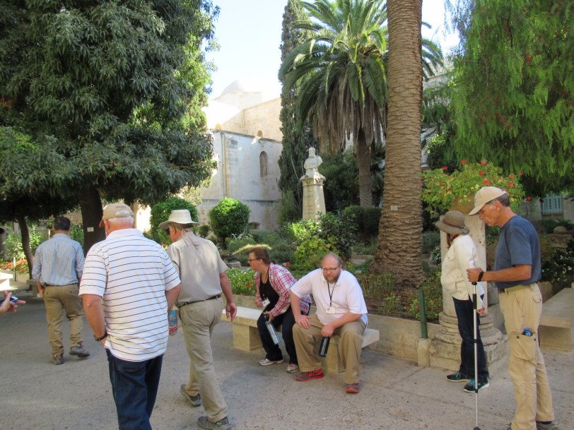 The view from the top of the Mt. of Olive was iconic. We could look down on the Temple Mount that we had just left. The dominant feature between where we were and the wall around the old city and the Temple Mount were the cemeteries. The Jewish cemeteries covered the eastern side of the Kidron Valley while the Muslim cemetery nestled up to the city wall and the Eastern Gate. Muslims were betting that the Jewish Messiah would not cross a cemetery and enter the gate where he is to return. We walked down the path of Jesus on Palm Sunday. I can’t say that the walk was what I imagined it wou,d be as we were surrounded by 12 foot walls on both sides of the narrow road. Despite the less than scenic route, we reached the Garden of Gethsemene and found a quiet place to read scripture about the night in this garden. It was a much more satisfying visit than the one I remember from a few years ago. The Olive trees don’t look any older. I asked to visit the nearby cave where tradition has it that the apostles slept while Jesus prayed. Our guide was patient and we made a very quick visit to the cave.![]()