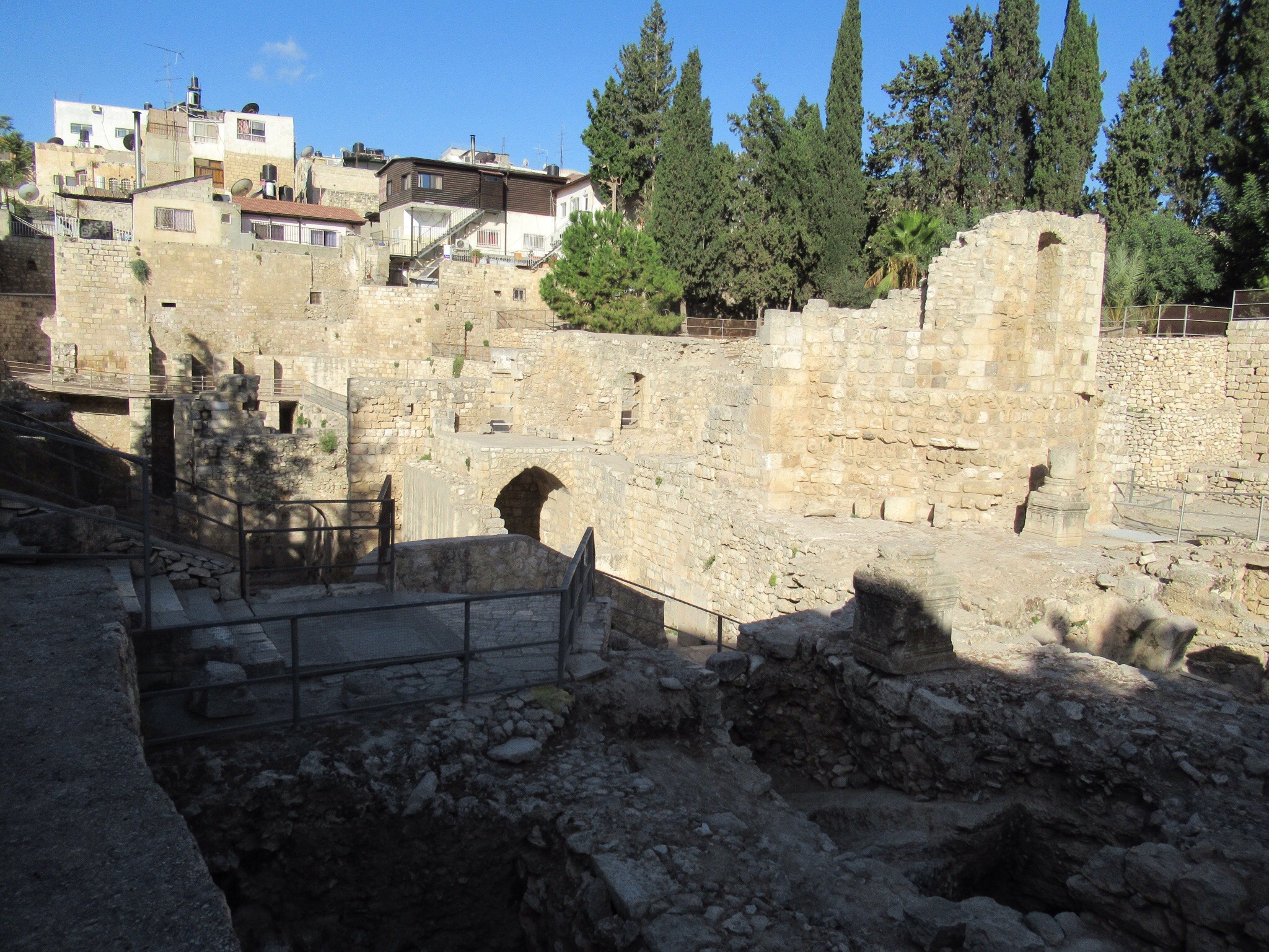 At the Pool of Bethesda Jesus heals a man (John 5:7-9). For centuries the idea of the pool was thought to be part of an allegorical tale. In the 19th Century, archeologists discovered a pool near the Sheep’s Gate that matched John’s description. Until the discovery of this pool, many believed that the pool was actually the Pool of Siloam in the Kidron Valley. As with many things Biblical controversy surrounds John’s narrative. Archeologists have concluded that the Pool of Bethesda was a “healing pool” or Ascelepion thus the large numbers of infirm folks waiting their turn to have their infirmities washed away. Some versions of the Bible talk of visits by angels to stir the water to enhance the effect. Nonetheless, Jesus didn’t need any assistance and even chose to help the infirm on Shabbat – Saturday, the day of rest.