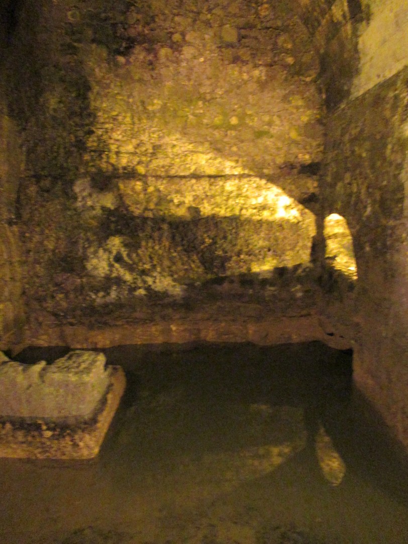 We then entered the tunnels that were next to the base of the “western wall” that Herod built to provide the foundation for the Second Temple. The Hasidic and other ultra-Orthodox Jews wear their mourning clothes of black. They are still mourning for the destruction of Herod’s Temple by the Roman’s in 70 AD. The temple was built a top the massive foundation stones that we were walking along. It was long and dark but still interesting as we reached the pools that provided water for the Roman garrison that was stationed next to the temple to keep an eye on the Jews in their temple.