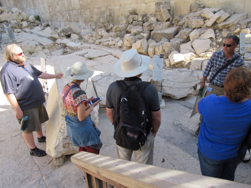 Starting at the familiar Dung Gate we climbed and wandered over to the South Wall of the Temple Mount. The stones placed there by Herod the Great are huge and frequently larger than those used to build the Pyramids. While. Walls are impressive, what we were interested in was the steps that commoners used to reach the temple. We soon found ourselves walking on the same stones where a young Jesus talked and walked. It was a moving experience for all of us.