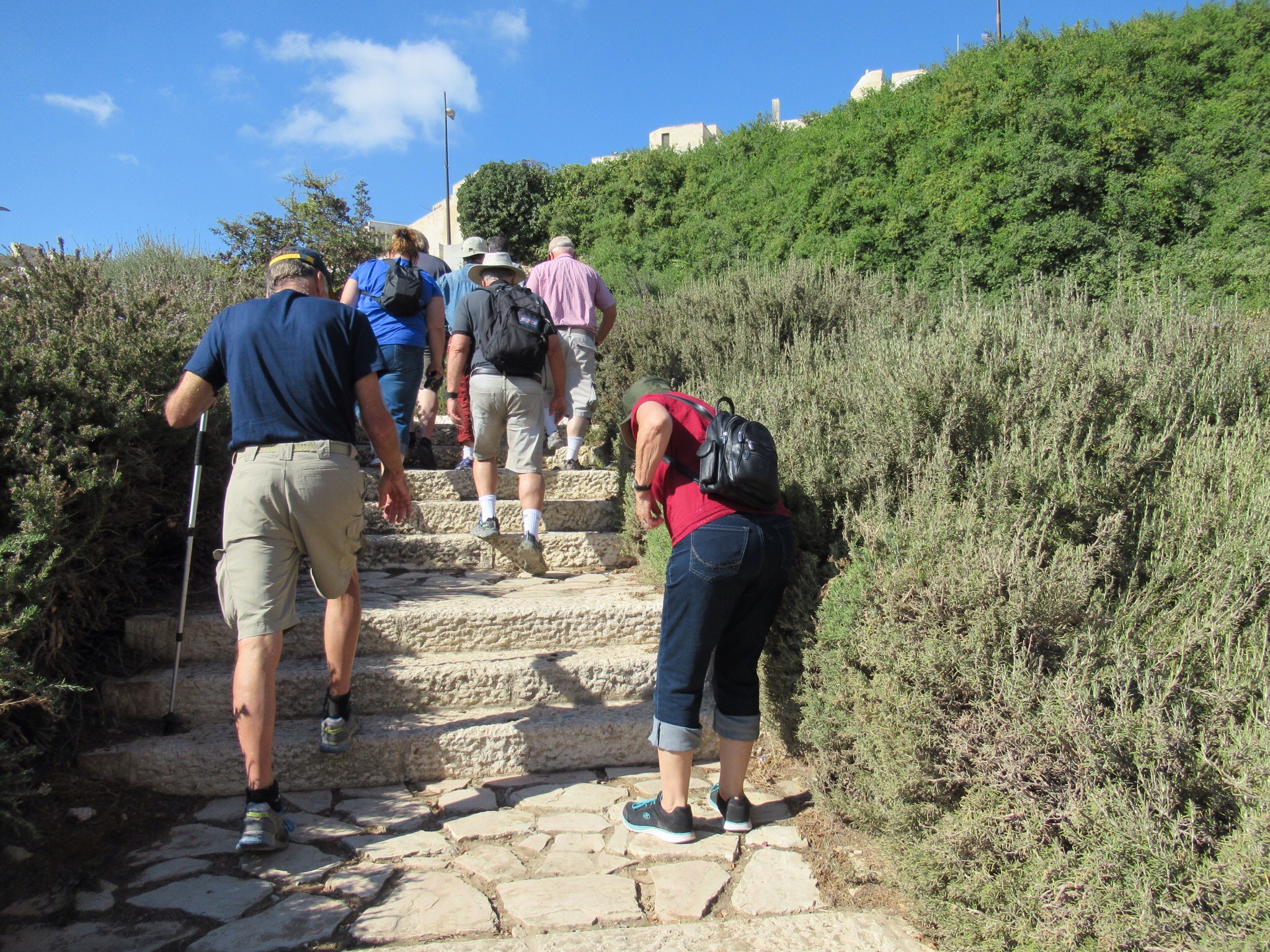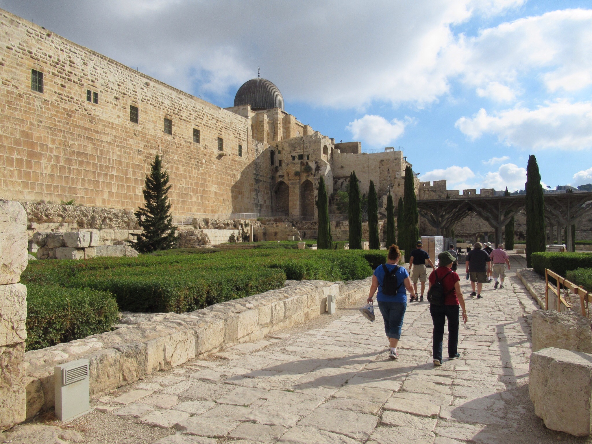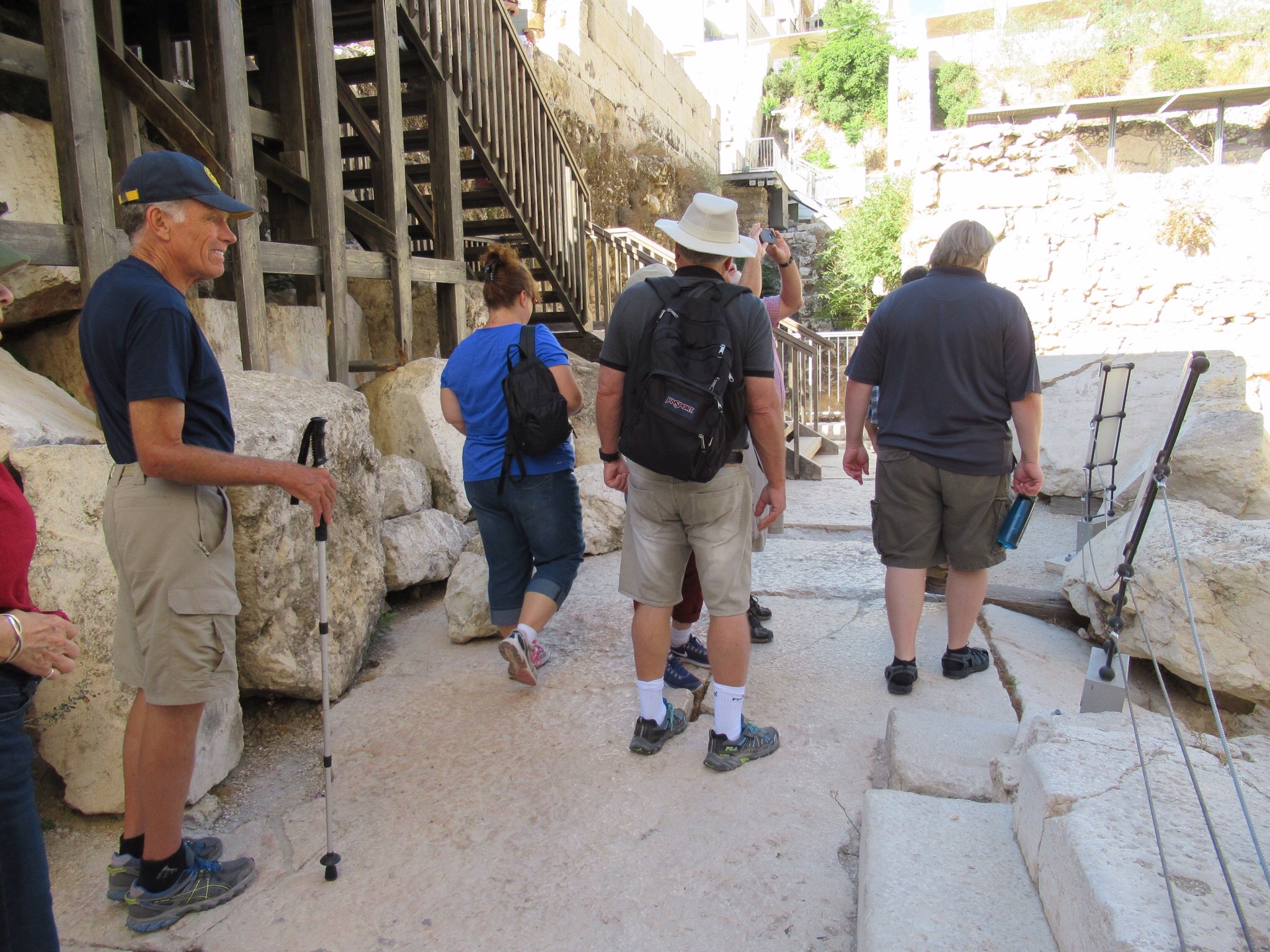 Starting at the familiar Dung Gate we climbed and wandered over to the South Wall of the Temple Mount. The stones placed there by Herod the Great are huge and frequently larger than those used to build the Pyramids. While. Walls are impressive, what we were interested in was the steps that commoners used to reach the temple. We soon found ourselves walking on the same stones where a young Jesus talked and walked. It was a moving experience for all of us.
