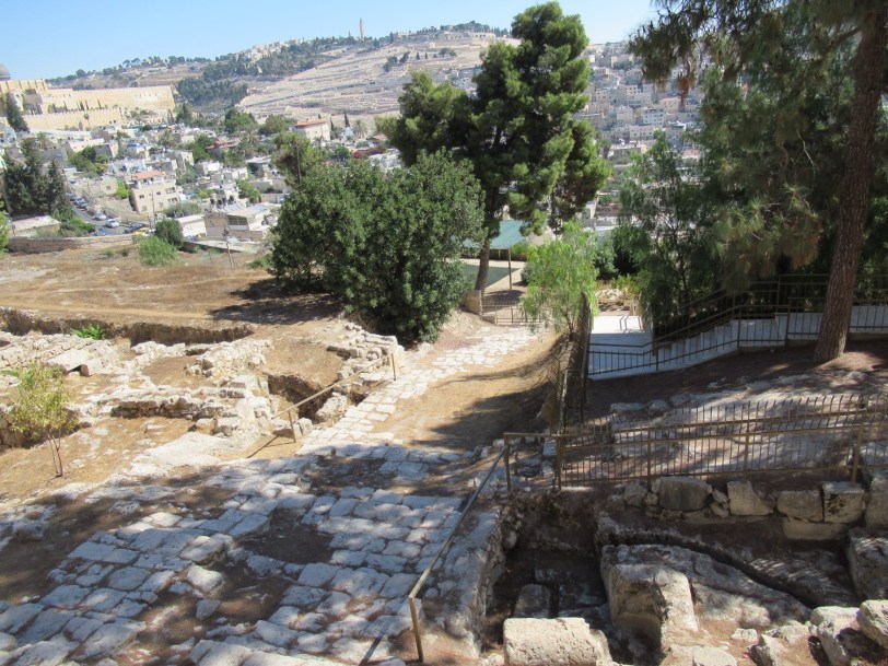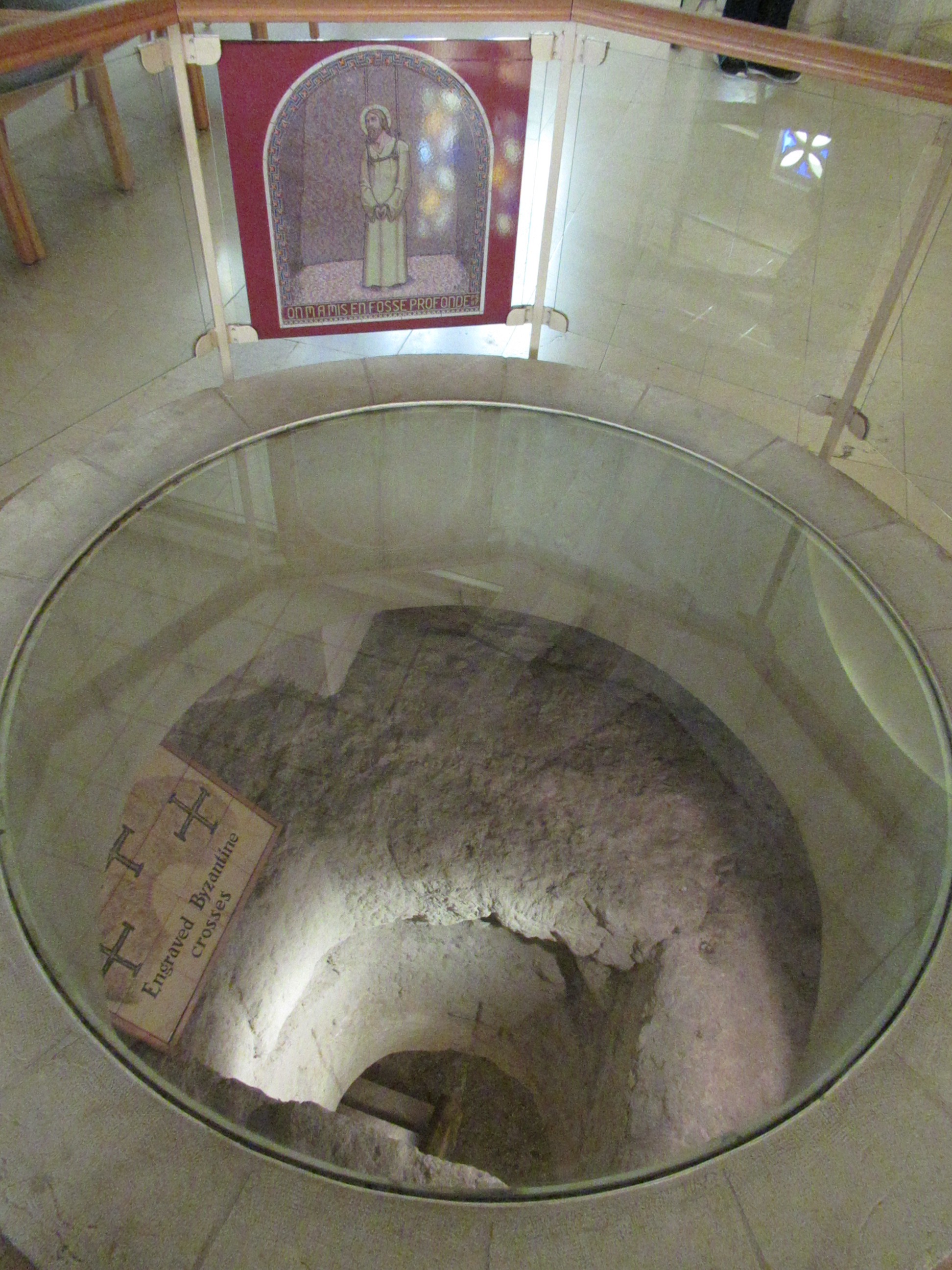 The Catholic Church of Gallicantu that is by tradition the location of the house of the High Priest Caiaphas where Jesus was scourged and thrown into a dungeon before being sent to Herod and Pontius Pilate for judgement it is also the place where Peter denied his knowledge of Jessus three times before the Cock crowed thus the Gallicantu. The location of these events occurred here by tradition. Where the this is accurate or not or close by was or is not that important. What was significant was the oppressive feeling of the dungeon and the setting. The view from the church allowed us to review and test our knowlege of locations that we have visited. The city walls and gates and various archeological levels actually make sense.