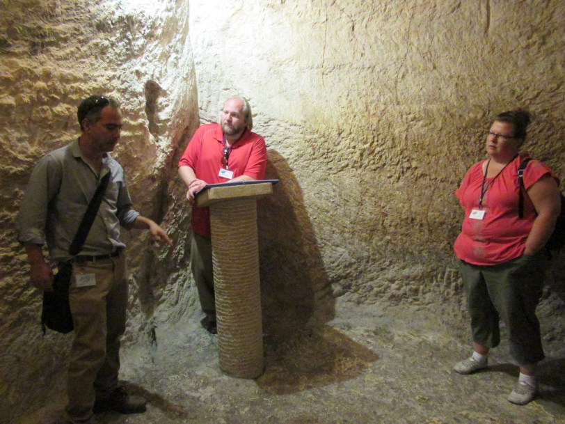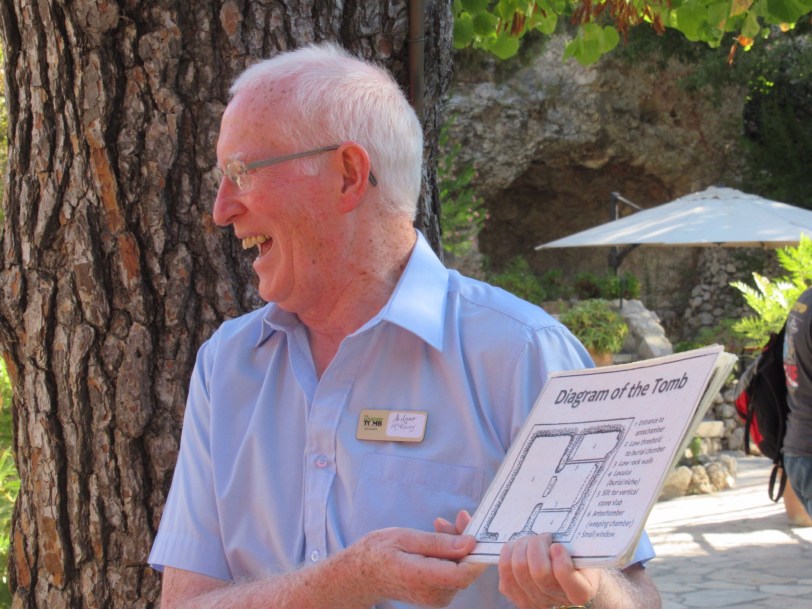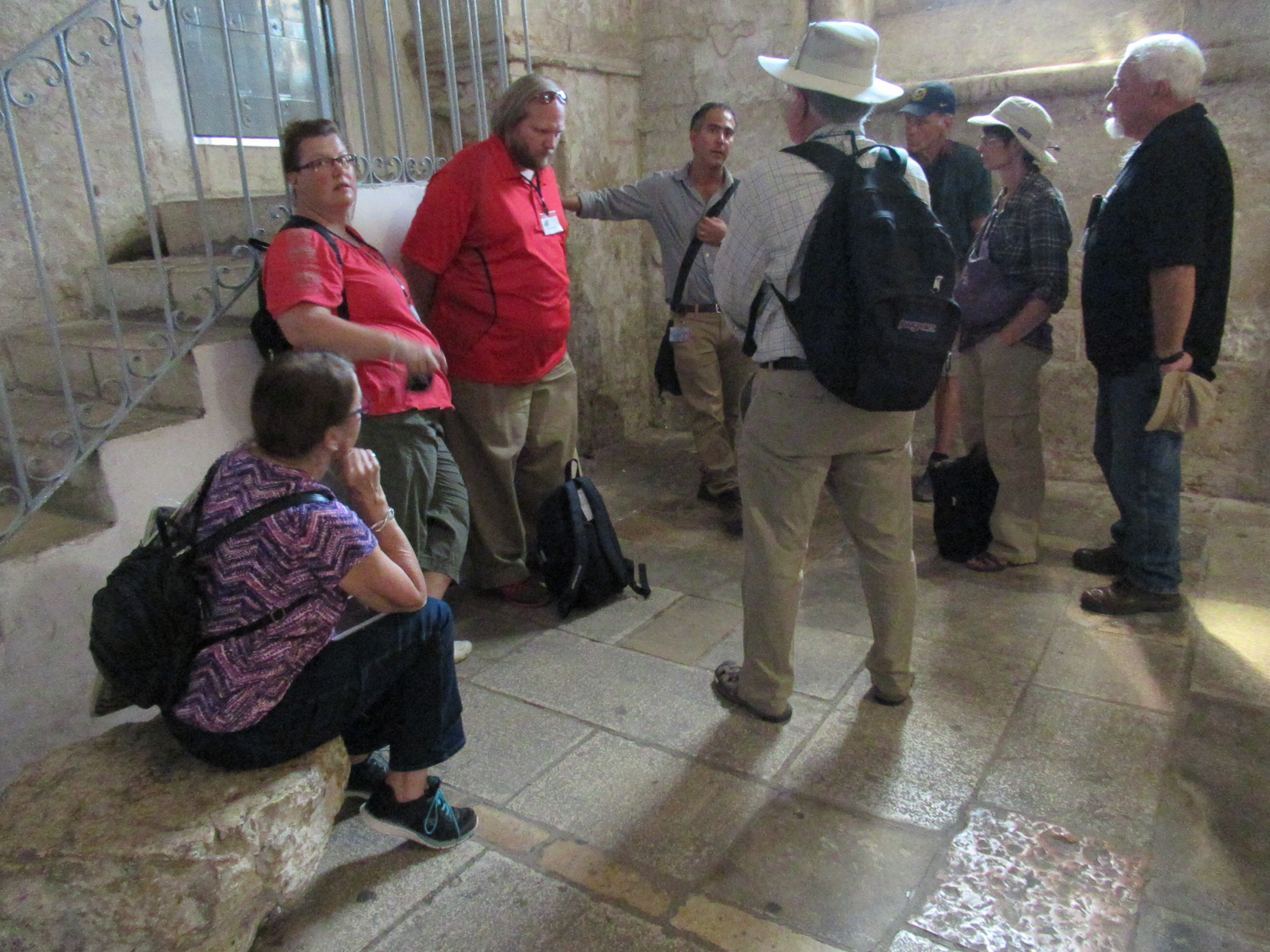 Today we started our day at the Garden Tomb where we enjoyed the beautiful and tranquil setting. The location of the tomb is popular with Protestants who have difficulty with the cacaphony of the church of the Holy Sepulchre. Our enthusiastic Irish guide Edgar was a delight. He was pretty convincing about the accuracy of the location unfortunately archeology places the dating of the Garden Tomb some 700 years before Jesus. The highlight of the visit was the Communium service performed by our Pastor in a quiet location of this wonderful place.