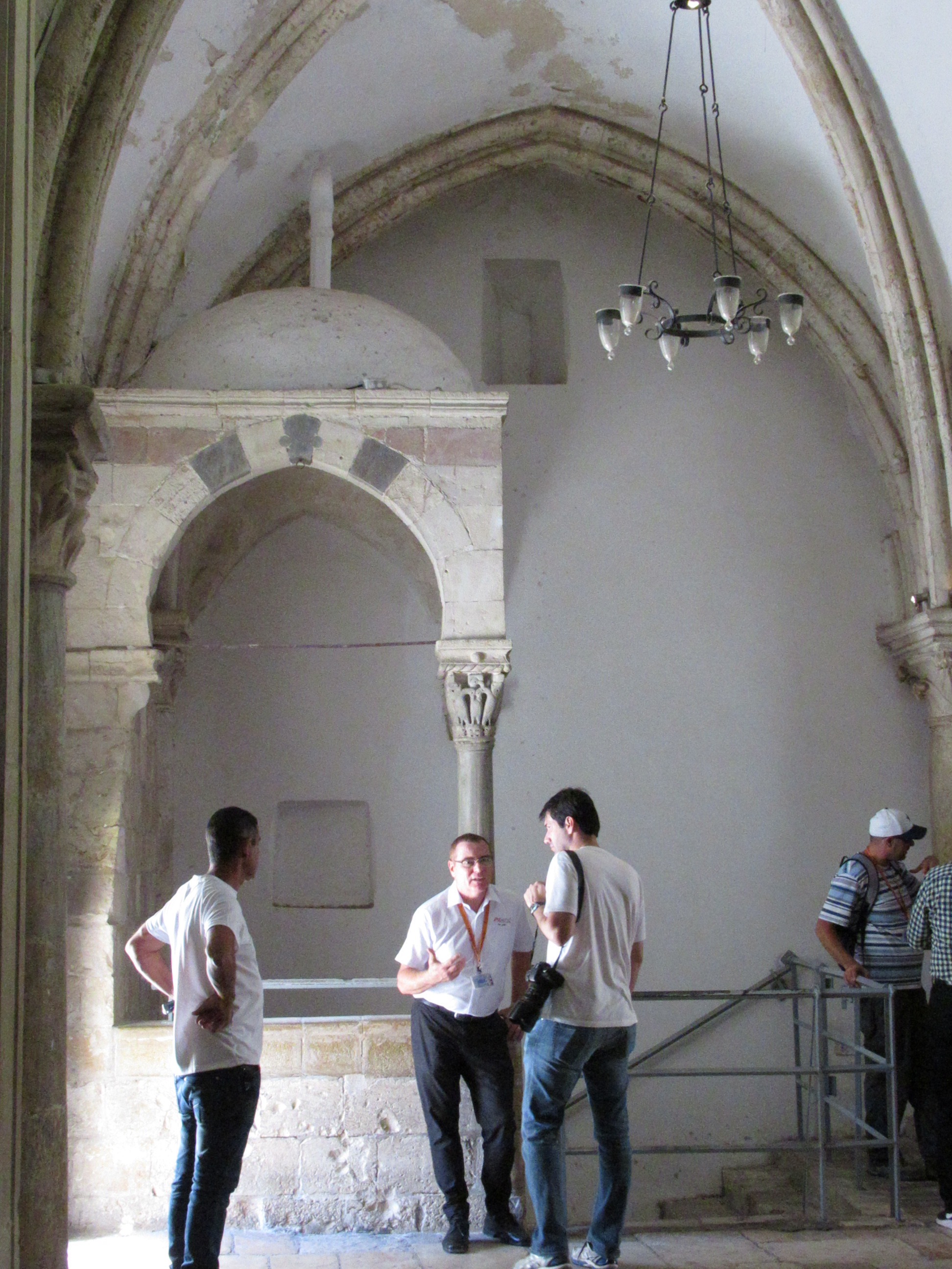 We proceeded to the traditional location of the Last Supper in the Upper Room. Again the location is traditional and the physical room today was constructed by Crusaders and preserved by its use as a mosque during much of the last thousand years. Again whether the meal was here or close by is not the important fact. It certainly happened nearby.