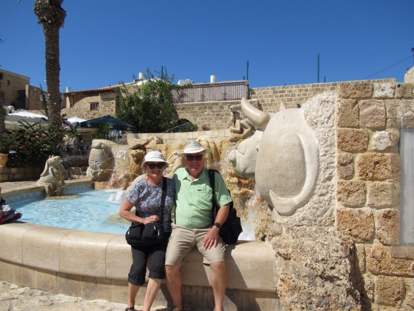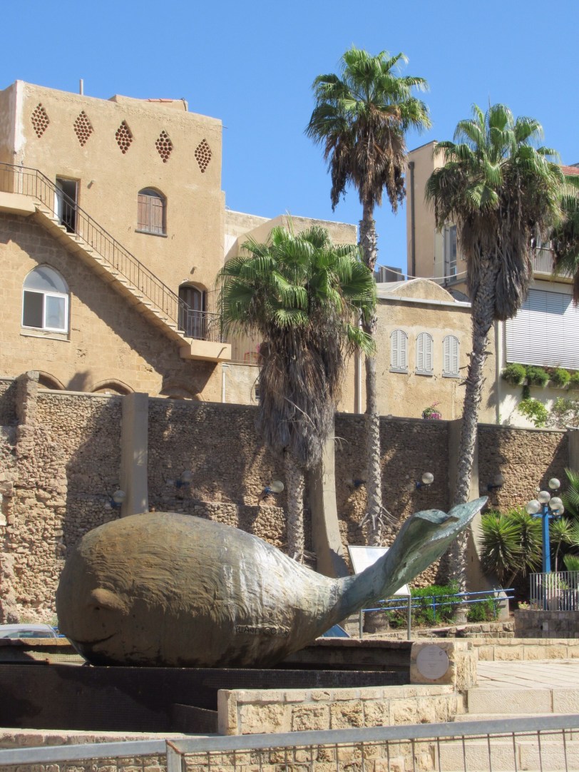 We reached Jaffa and its port. In brief, it is one of the oldest seaports in the world. Canaanites and Philistines we using this place over 4,000 years ago. Tradition has it that One of Noah’s sons founded the place. It was also cruise port that Jonah used before meeting the whale. We found the concrete whale a little later. We even a camel that liked Audrey.The port was conquered and owned by a vast array including Napoleon. We enjoyed the waterfront that had been built by the British and was the sight of memorable events when Holocaust surviving Jews tried to enter their Promised Land. None of that is too apparent today. Instead the “Old Jaffa” exudes Mediterranean charm and vibrancy. We did finds some open shops and excellent Gelato shops. After poking around, we visited St. Peter’s church and more importantly we found the humble dwelling of Simon the Tanner. It was there that Peter got the word that whatever God creates is good and that there are no unclean animals (like pigs) and that Peter should work on converting Gentiles to the Way.