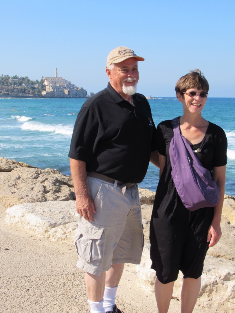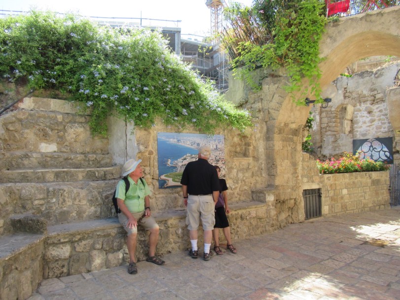 Enjoyed the chance to sleep in before beginning our daily adventure. We managed the gift of a bottle of Shabbat sweet wine with our breakfast. Too sweet for my taste but it was drunk in the spirit of the toast “Locheim” or “To Life”. Out the door and on the beachfront promenade for what turned out to be a three mile stroll along the sea to reach the ancient seaport of Jaffa or Yafo in Hebrew. Today is Shabbat, the day of rest, so most stores except those run by Christians and Muslims will be closed. Peggy and Audrey are still hopeful.