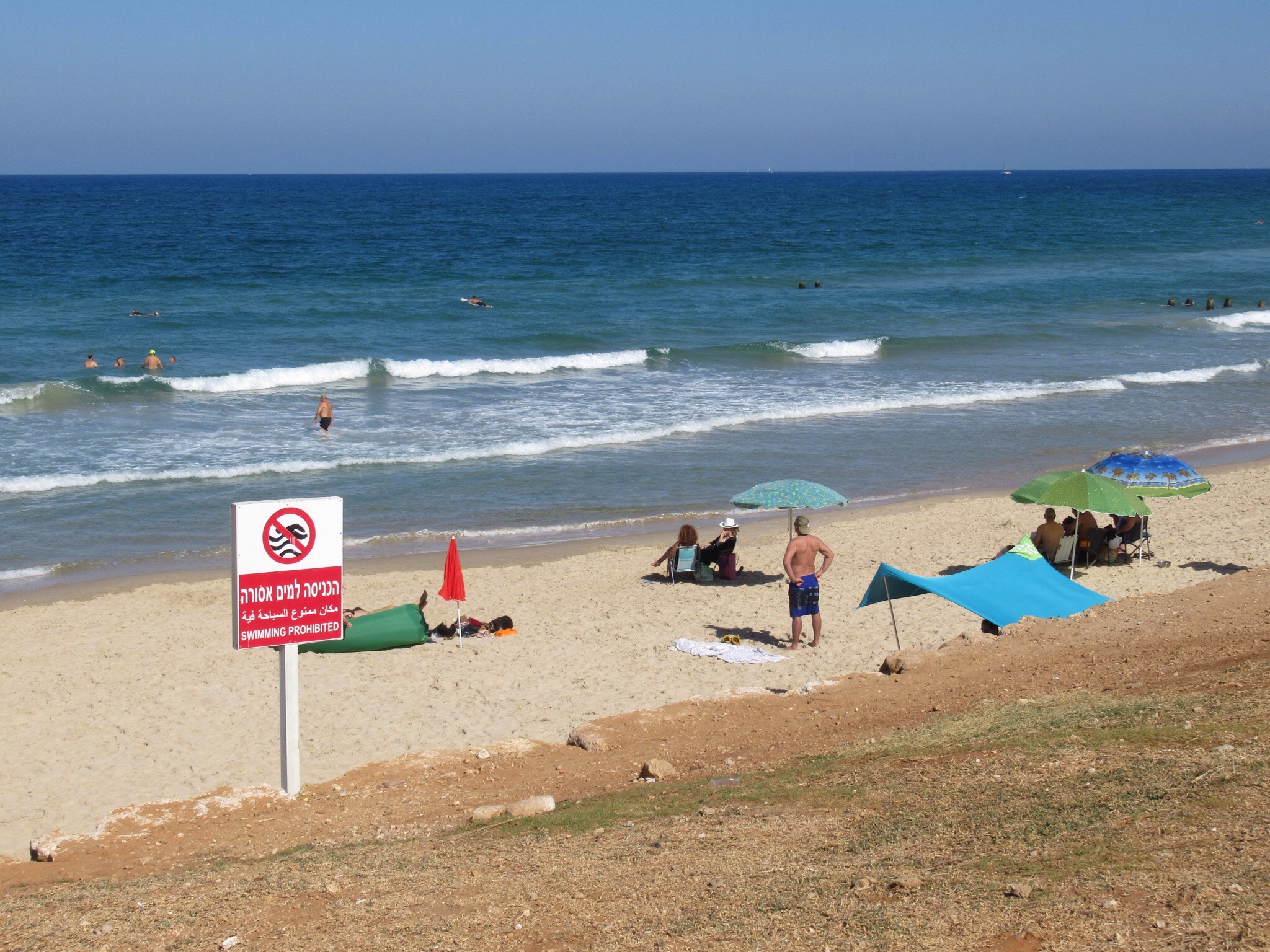 The beaches are full of frolicking folks with kids, dogs and every imaginable form of transportation for the water and the sidewalk. We managed to navigate through the bikes (electric and otherwise) as well as the skateboards and Pokemon-go players without mishap. We did manag to have a people jam in the narrow alleys of Jaffa. Contrary to our previous belief, dogs of all sizes and breeds are alive and well in Tel Aviv. This being the day of rest, we saw no Hasidic Jews but plenty of others wearing beach wear that you would see on a California beach. The few Muslim women in their Hajibs looked some what uncomfortable but seemed to be enjoying themselves.The Muslim men are indistinguishable from the Israelis and seem to hang back from their women folk.This is just my observation. We did not see a Jewish cap all day long. I conclude that the Tel Aviv beach is not Jerusalem.