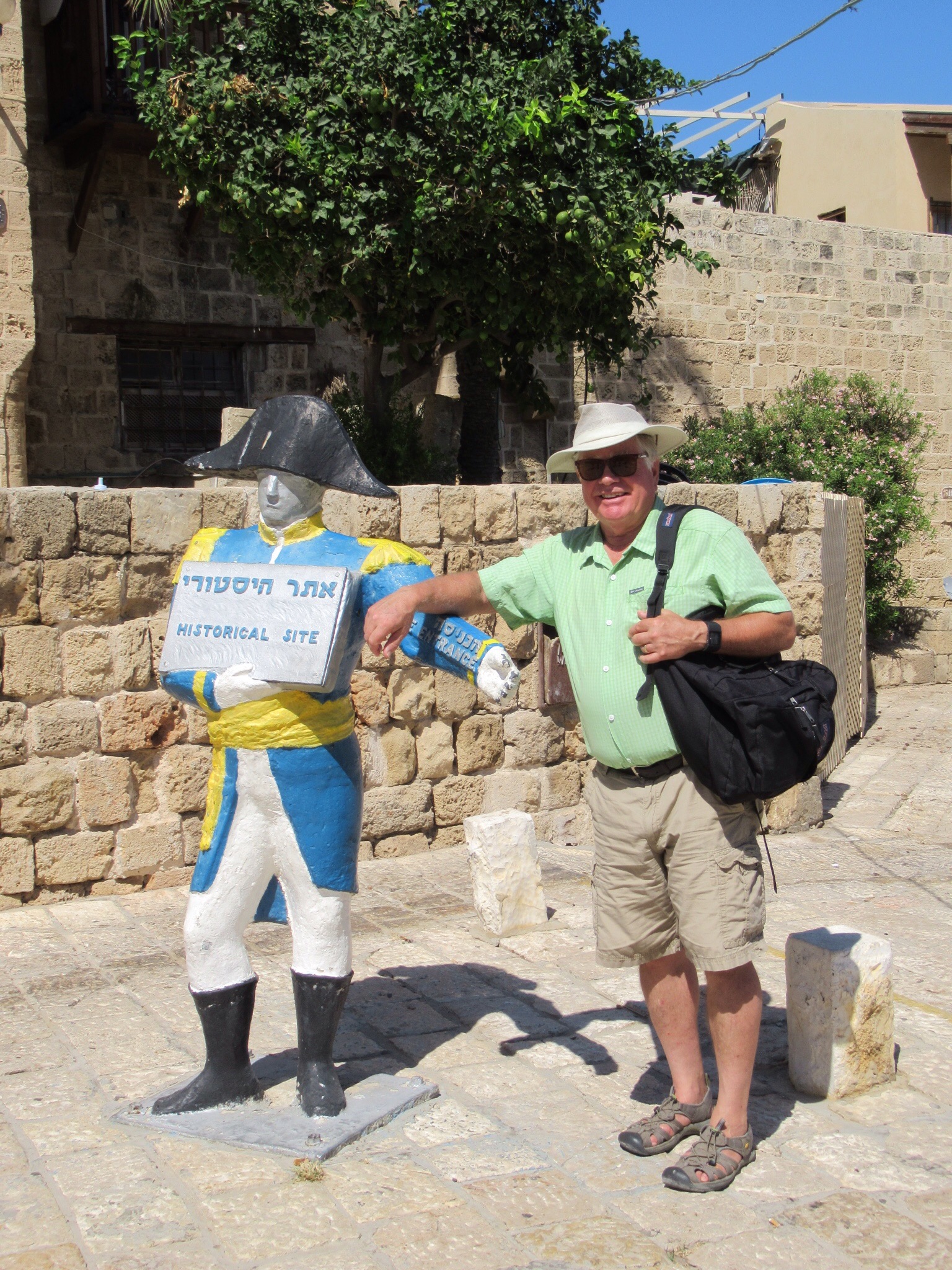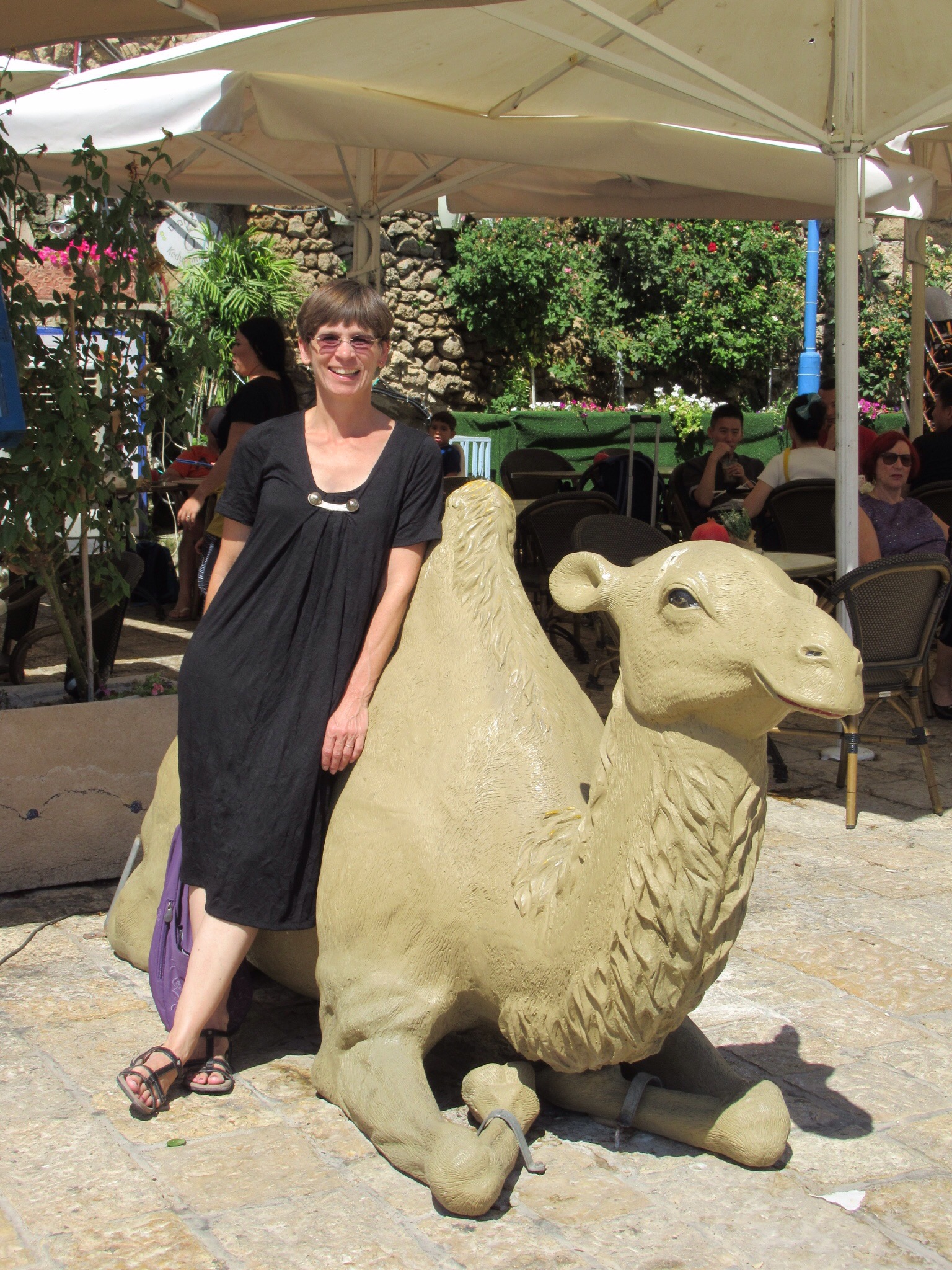We reached Jaffa and its port. In brief, it is one of the oldest seaports in the world. Canaanites and Philistines we using this place over 4,000 years ago. Tradition has it that One of Noah’s sons founded the place. It was also cruise port that Jonah used before meeting the whale. We found the concrete whale a little later. We even a camel that liked Audrey.The port was conquered and owned by a vast array including Napoleon. We enjoyed the waterfront that had been built by the British and was the sight of memorable events when Holocaust surviving Jews tried to enter their Promised Land. None of that is too apparent today. Instead the “Old Jaffa” exudes Mediterranean charm and vibrancy. We did finds some open shops and excellent Gelato shops. After poking around, we visited St. Peter’s church and more importantly we found the humble dwelling of Simon the Tanner. It was there that Peter got the word that whatever God creates is good and that there are no unclean animals (like pigs) and that Peter should work on converting Gentiles to the Way.