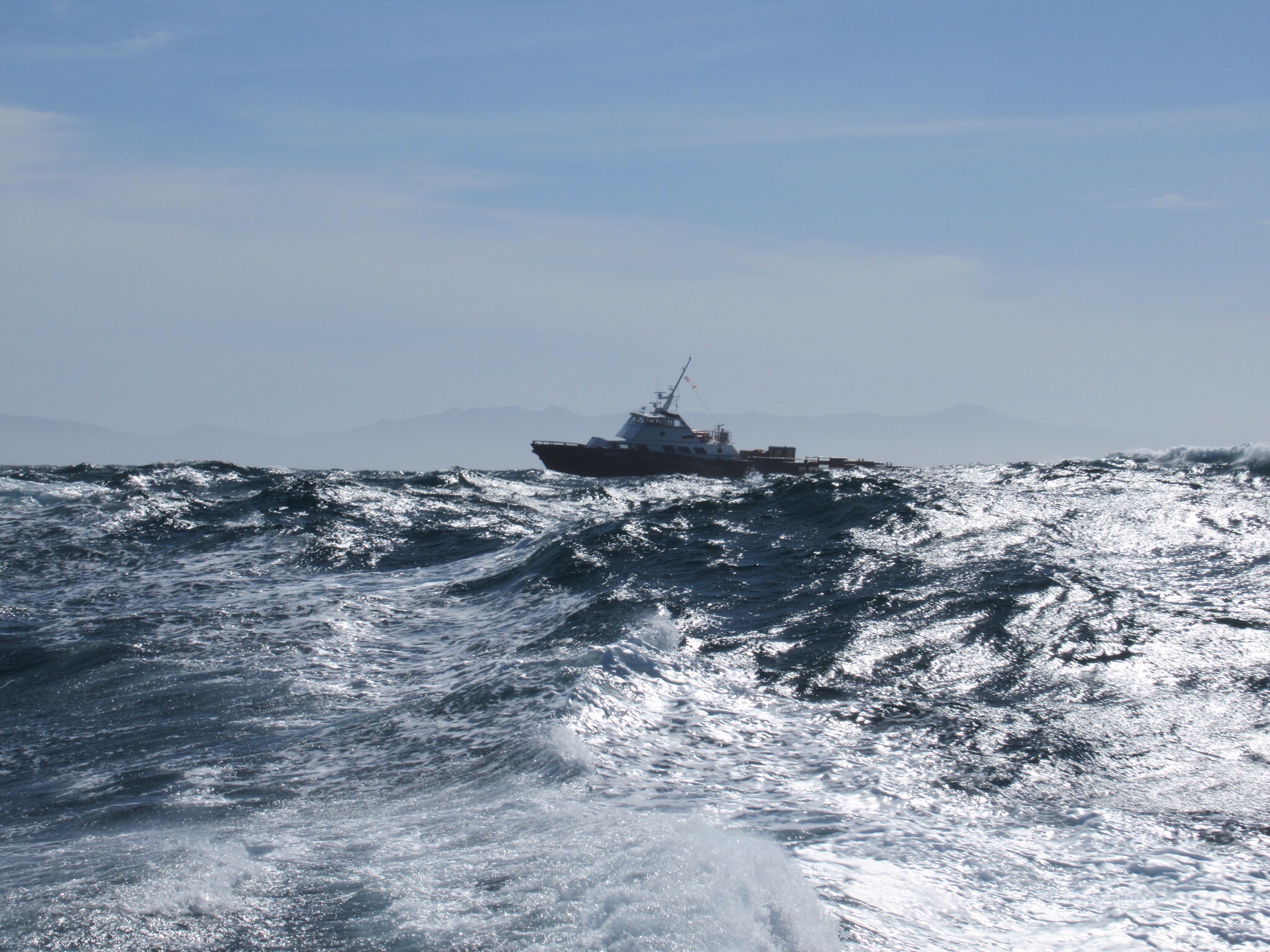 The voyage back was even more exciting with the following seas almost appearing to swamp the boat. We were now ready for the LA freeway system.