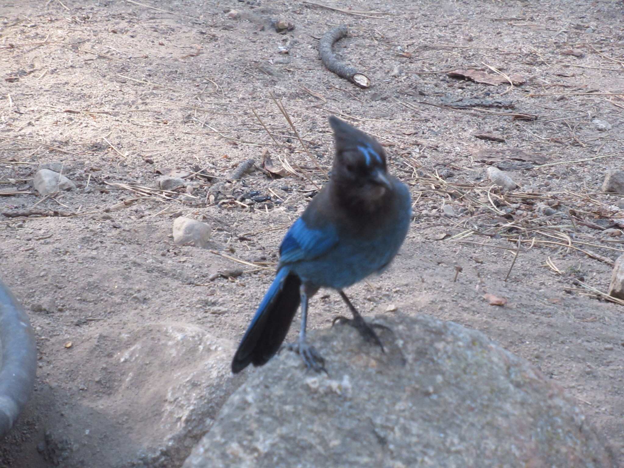 After being well done, we headed into Markleevile for groceries and dinner. The town is cuter than I remember. Obtained our breakfast at the well provisioned general store that included a well stocked wine room. Impressive. Enjoyed a light dinner at a very busy eatery. Returned and set up camp. 8 minutes. Tried to enjoy a glass of wine but the local knats love Zinfandel. We did remember to keep the place bear clean. No snakes spotted. Peaceful night with no bear moments. Plenty of Steller Jays with their Mohawk head dress.