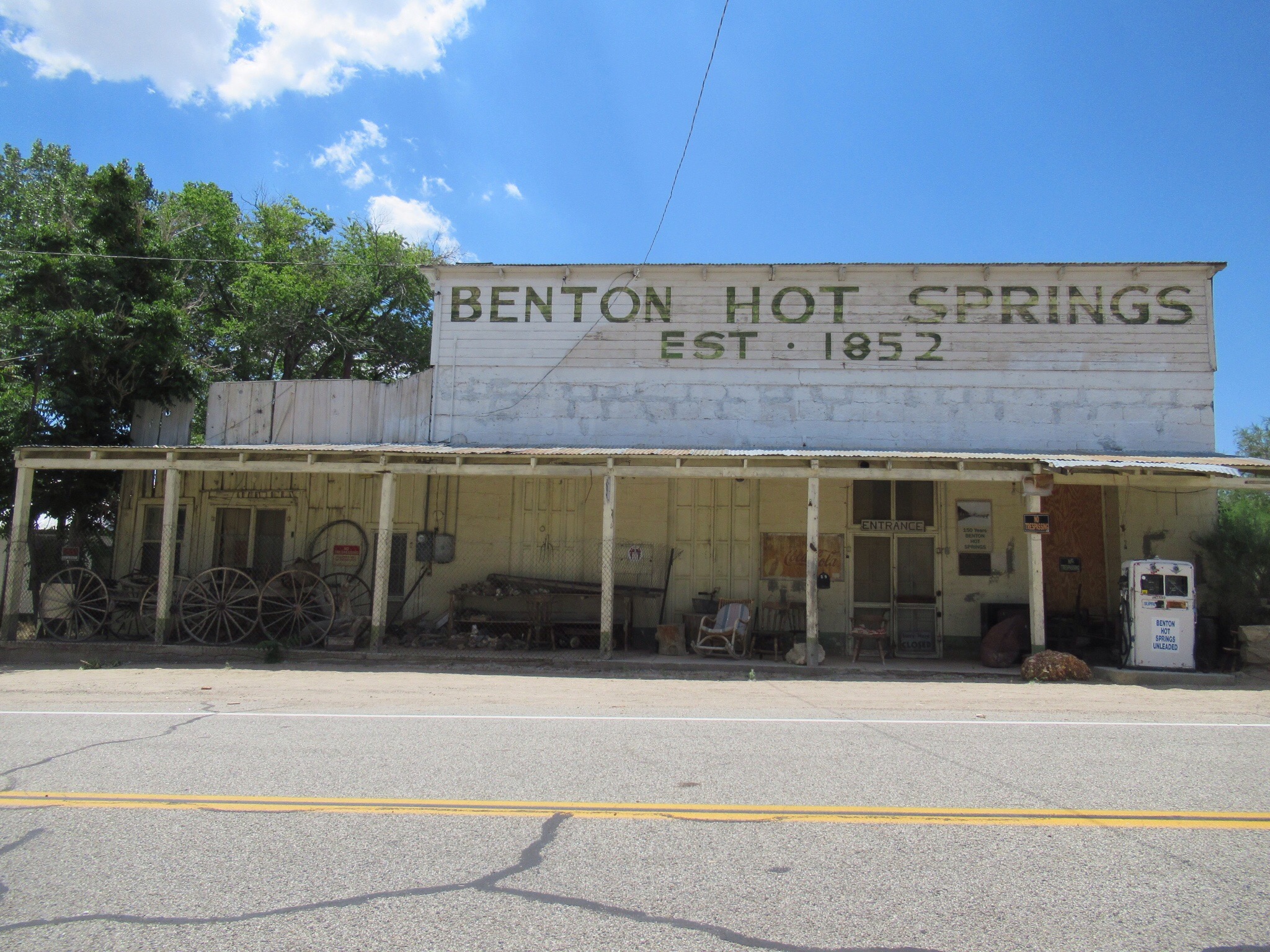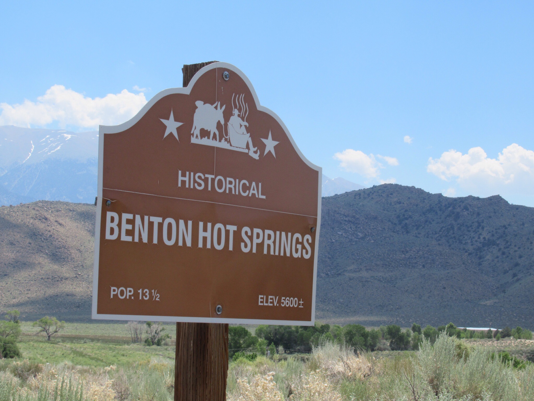 Up and over Monitor Pass. More people on bikes than cars. There is still plenty of snow in the Sierras. The Caltrans crews were out in force and the there were plenty of delays on 395 that wanders down the eastern side of the Sierras. I was quite happy to head towards Nevada on 120 shortly after Lee Vining and the still closed Tioga Pass. Once we passed Mono Lake, we were in new territory. The region is still green and surprisingly lush. I usually figure that area should be rocks and rattlesnakes. Before we left California, we drove through Benton Hot Springs that was founded in 1852. Didn’t stop long as we sprung from yesterday. I am still trying to figure if the 1/2 in the population was the gas station attendant. I was afraid to ask.