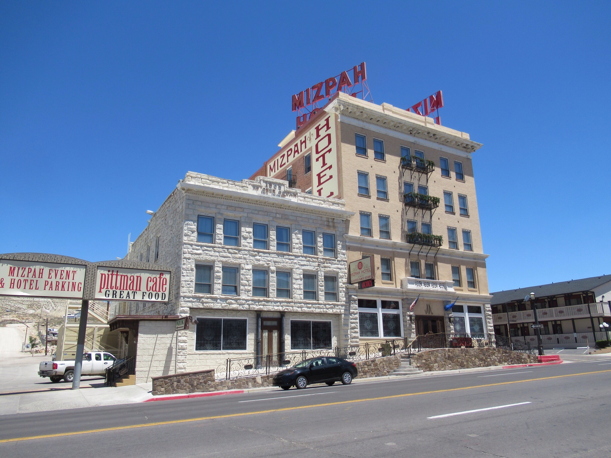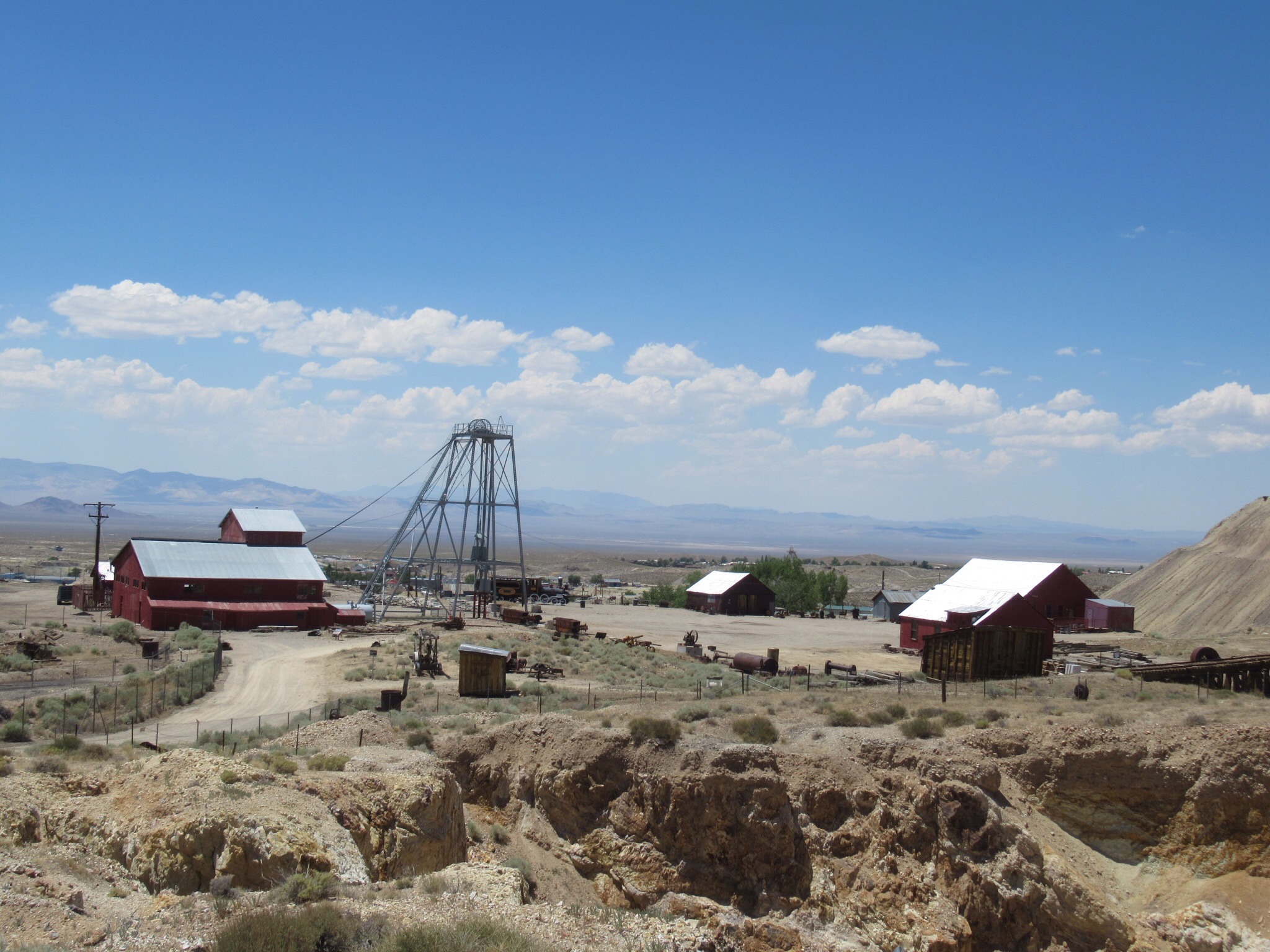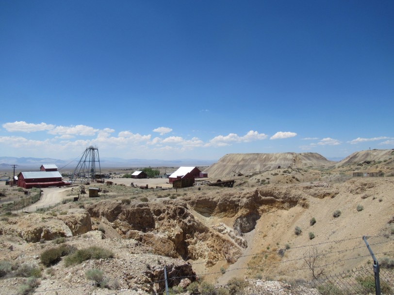 We reached Tonopah and the middle of Nevada by early afternoon. The town was founded after a guy was going hurl a rock at a poor mule. He noticed that the rock was silver and decided to dig the Lost Burro Mine. The region spawned the largest silver mine after the Virginia City Comstock Lode. The deeper and richest mine was the Mizpah. That is Hebrew for “lord watch over me”. Not sure why miners would want the watchful eye of the Lord but the name stuck. It is also the name of the historic hotel.