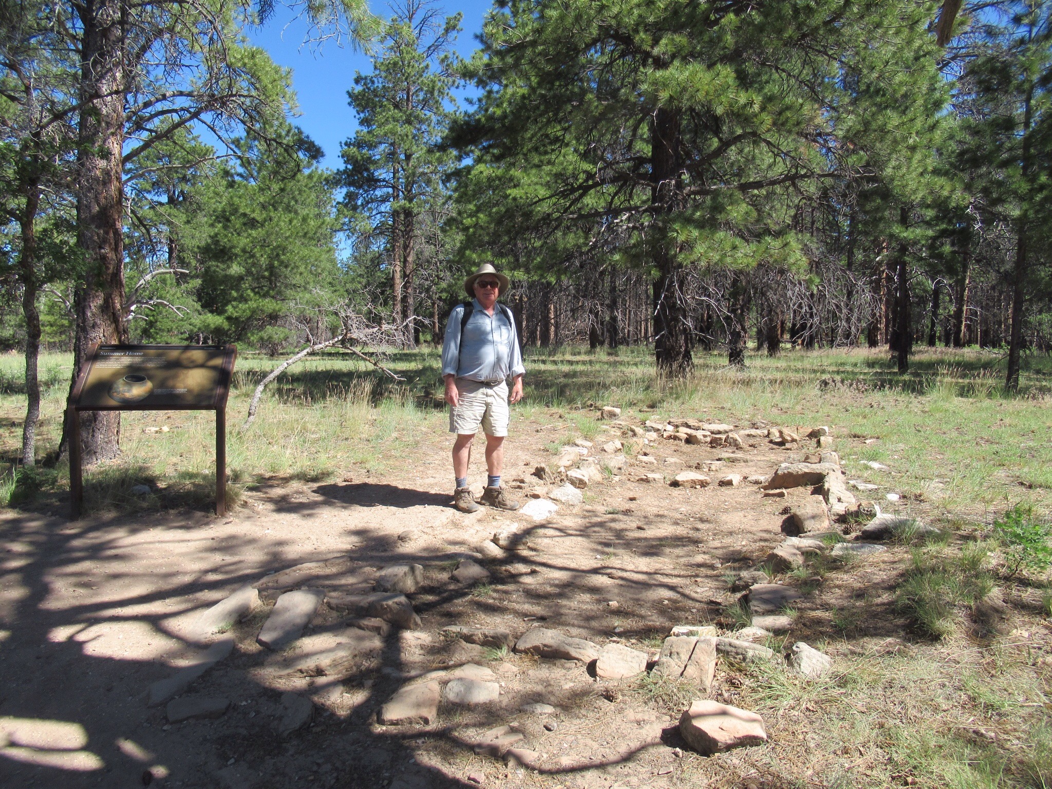 We missed the dinner in the fancy dining room, but we did make breakfast. Enjoyed the view through the huge windows. These windows were stil too small to capture the magnificence. The eggs were good. We were ready for a hike. After packing the car, we headed off for a three mile morning hike. It was cool and wonderful. We also saw what the archeologists have found of the summer houses of the Anazasi farmers from a thousand years ago. They spent the summer on the relatively cool Kiabab plateau. It will be exciting to see similar Viking foundations in Labrador later this summer. Both cultures left their farming efforts. It is apparent that the ancient Indians survived in a different context. Of course, my Viking ancestors also survived in sunnier climes like Normandy.
