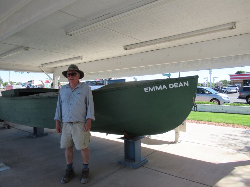 Returned to the city of Page and stopped at the Powell Museum dedicated to the one armed explorer who first braved and survived a passage down the river. I posed in front of a replica of the boat dedicated to his wife Emma. Quite a story. The little museum was well done.