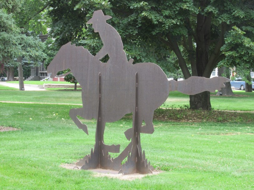 Probably more dangerous to the rail crews were the inhabitants of the tent city known as Hell on Wheels. The murders averaged better than one a day in the traveling cesspool that provided entertainment and a range of sinfull activities to separate the rail workers from their wages. In our travels today, we saw little evidence of the rowdy past. Mostly we saw tranquil farms and ranches on almost endless straight roads. There were infrequent rest stops and even fewer bathrooms until Easternp Nebraska. We survived even the Velveeta quesadilla.
