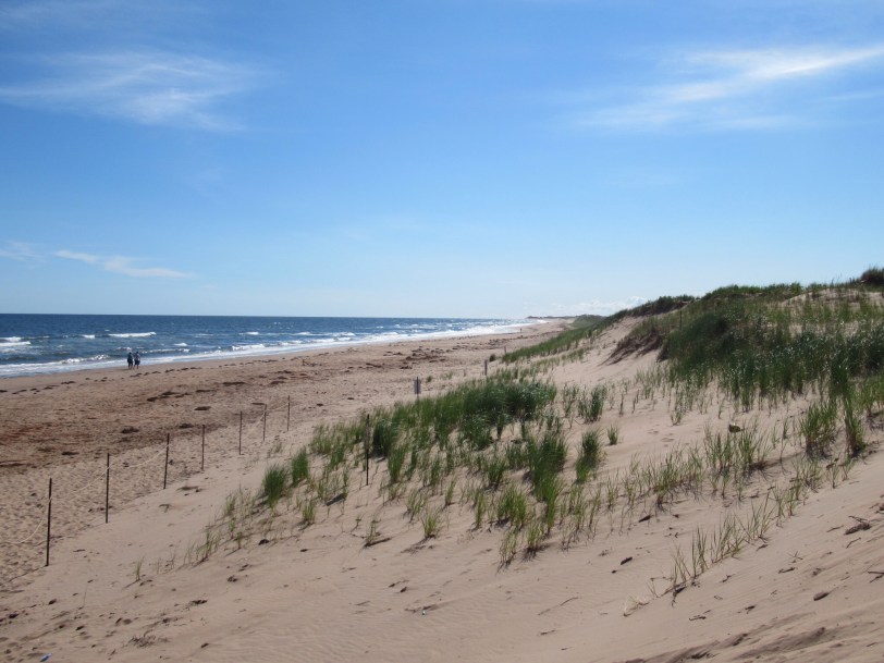We drove at a leisurely pace along the north coast of Prince Edward Island enjoying the sun and waves. The Prince Edward Island National Park is essentially a strip of beach but was still scenic. We stopped several times for pictures. There were few people on the beach despite the sunshine.