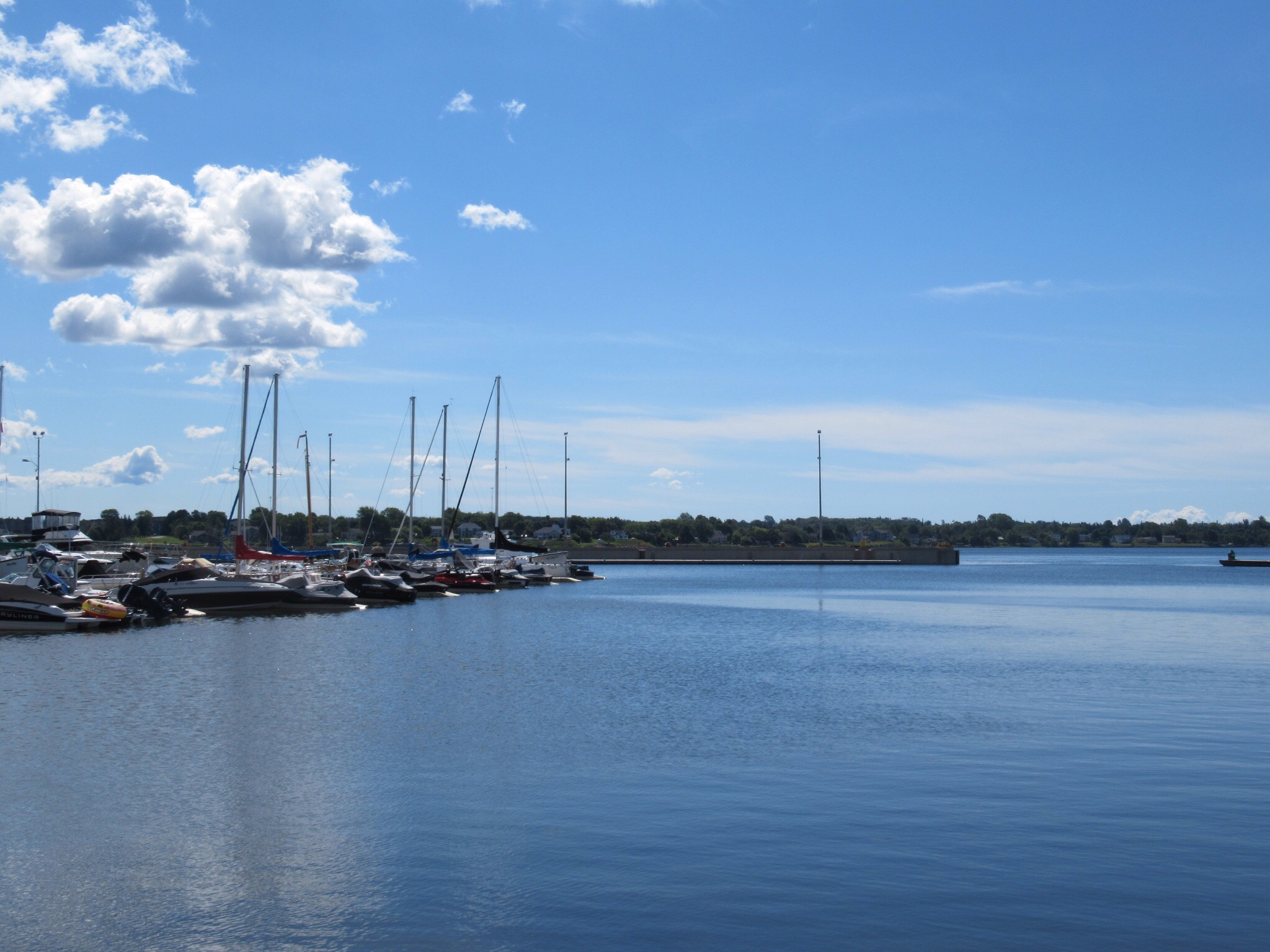 We drove south to Charlottetown, the provincial capital. The center of the city contains classic Victorian era buildings. We managed to walk around the dock and yacht club before perusing the neighborhood homes. It was very pleasant with no sign of decrepitude. It was also not on our agenda to spend a lot of time looking at city life. We followed the GPS out of town and headed toward the ferry to Nova Scotia. The drive through the potato fields was calming and uneventful.