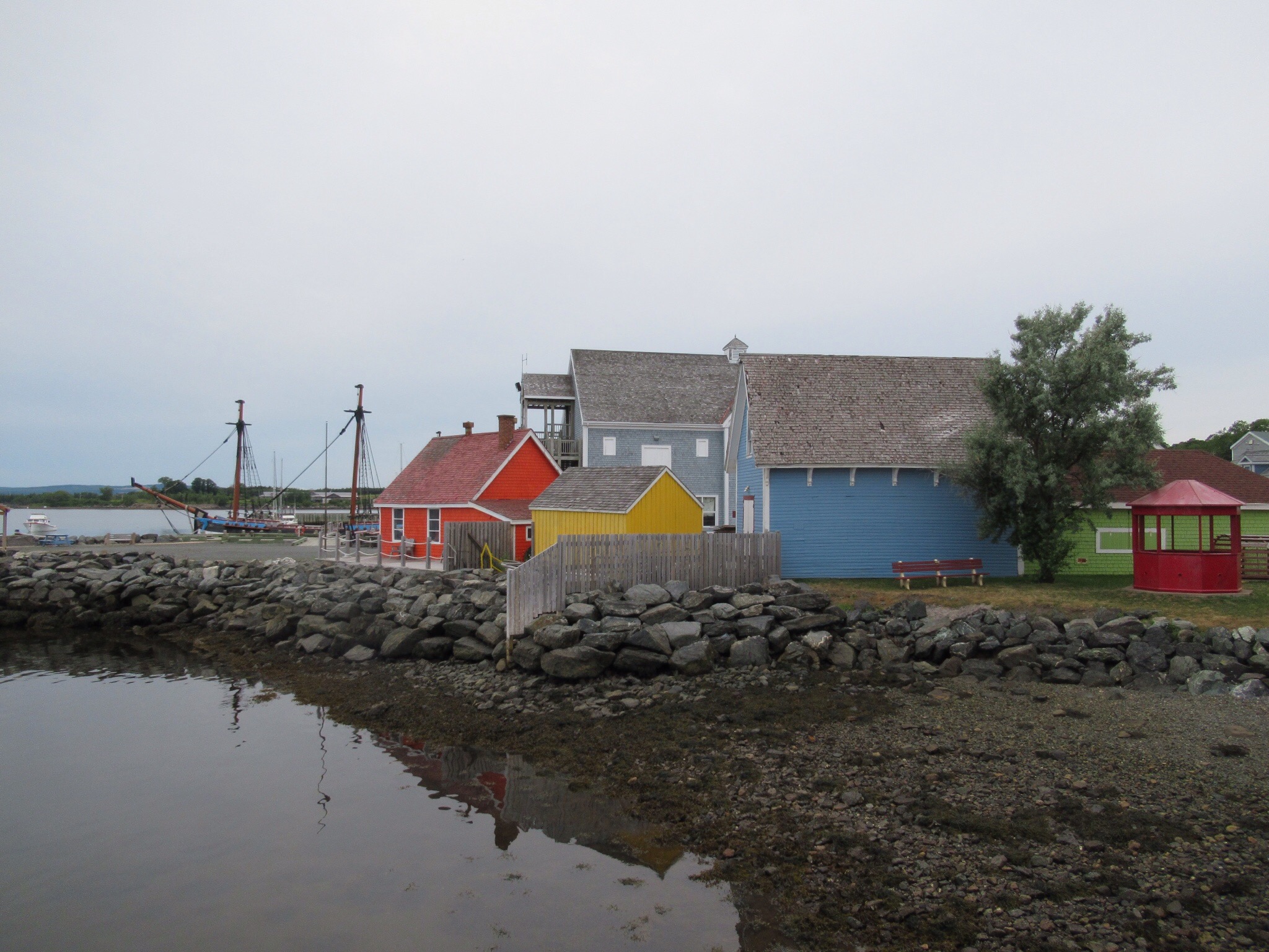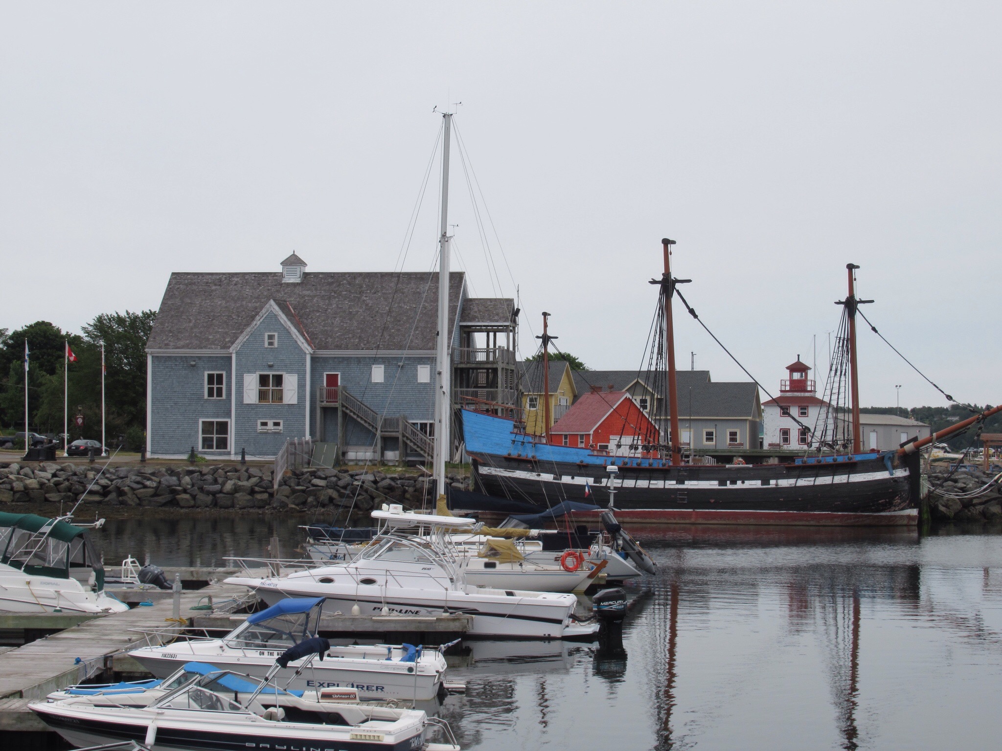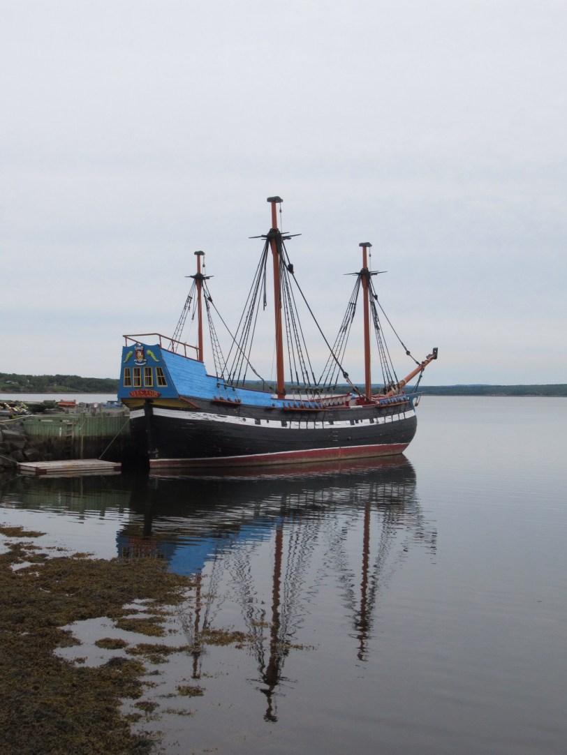 We boarded the large ferry and relaxed for the 90 minute crossing. We landed near the town of Pictou and found our lodging for the night. The small hotel was built in 1866 are just remodeled with antiques unique to each room. The exception is the modern mattress. We had a nice conversation with the proprietor and went for a walk. Pictou presents itself as the birthplace of Scottish settlement in Nova Scotia. They have rebuilt a replica of the ship “Hector” that landed in 1763 with some 200 Scottish settlers. It was of interest to us because the Scots-Irish Bryson’s probably landed in Philadelphia in a very similar ship in about the same era. It was no luxury cruise ship.