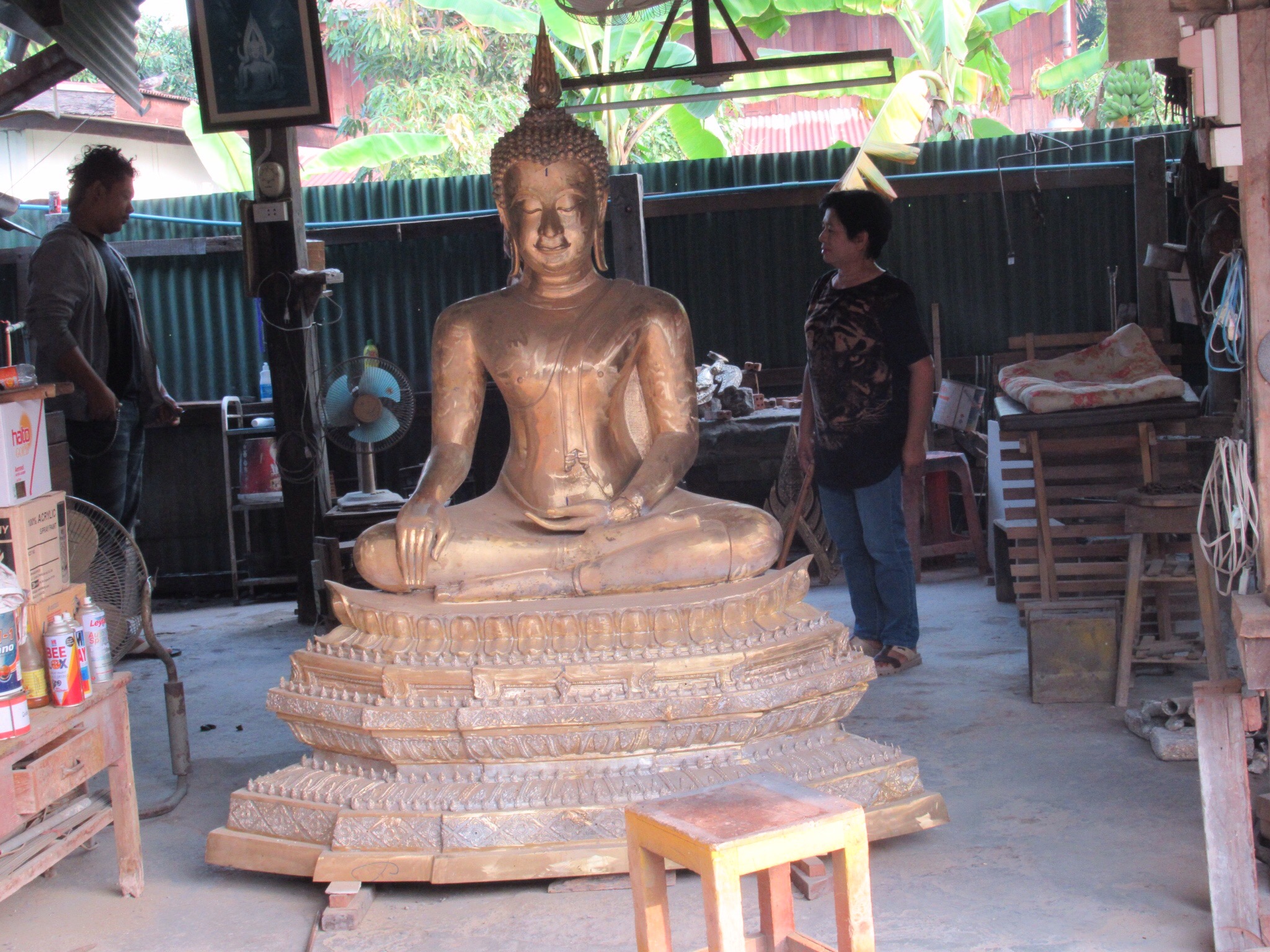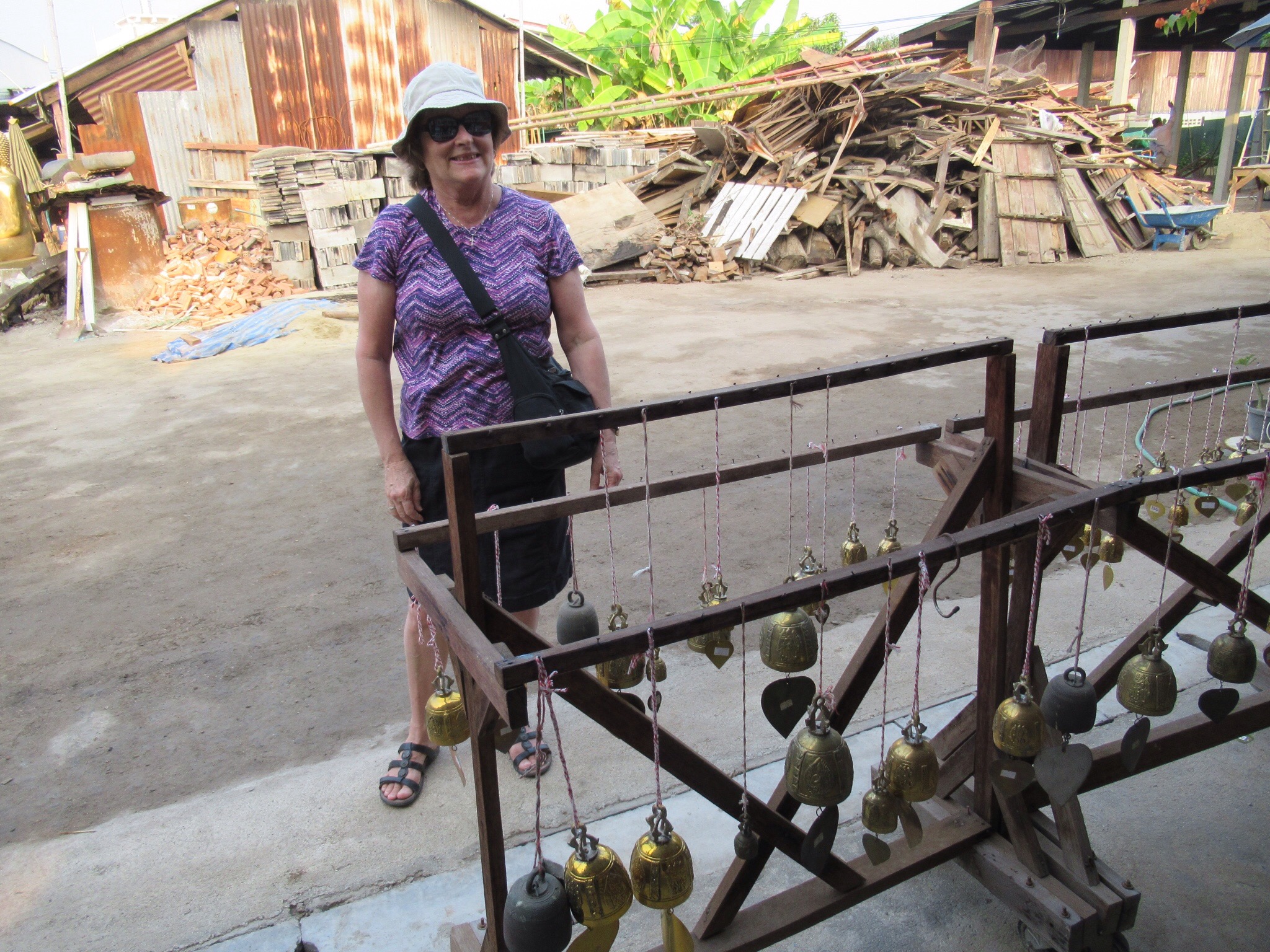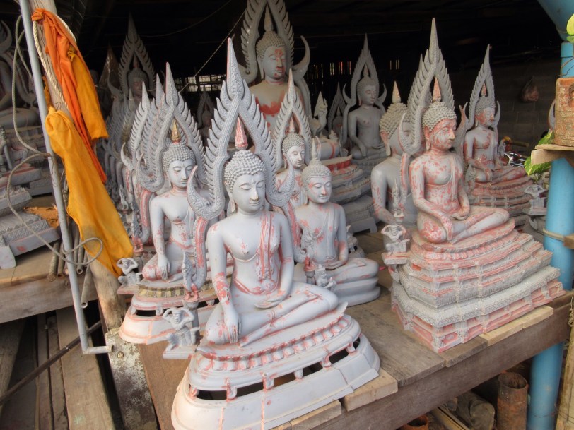 We left the Buddhist festival behind and reached the foundry for brass Buddhas. Even if we had wanted one, they would make us way over weight. We even skipped the little ones. Despite our lack of interest in owning such a sculpture, it was interesting to see the foundry and their approach to lost wax techniques. Since few folks, even amongst Buddhists want a thousand pound brass Buddha in their house, the casting company relies on groups who buy one for their favorite temple. It is kind of like buying pews or Bibles, except heavier. I was briefly tempted to buy a little bell but was reminded by my wife that we have a ship’s bell at home. Oh well.
