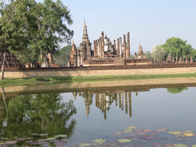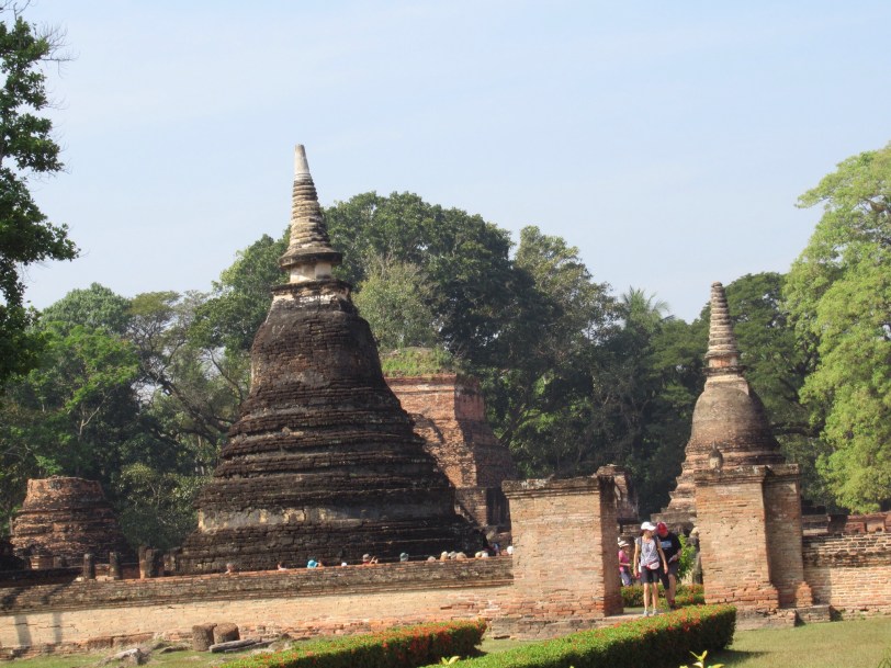 We next headed to another UNESCO site. The first Thai or Siamese capital was in Sukhothai. It was a city of one million in the 14th Century. This was the same time as the Black Death in Europe and London had maybe 50,000 inhabitants. Today the ruins that were abandoned in the early 15th Century are maintained as a historic park. Again there are zillions of bricks that remain largely intact despite being exposed to tropical conditions for centuries. There were plenty of Buddhas to go around. Sukhothai was taken over by its southern Thai neighbor Ayutthaya that we visited yesterday. Modern Sukhothai is sizable city south of the ruins. We stuck with the old stuff.