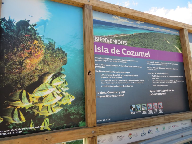We slept in after yesterday’s activities until 8 and had a leisurely breakfast before venturing out to grab a taxi. We soon found ourselves with two First Class ferry tickets to Cozumel that lies a half hour from Playa del Carmen. I am not one to go First Class very often but the two buck investment seemed worthwhile.