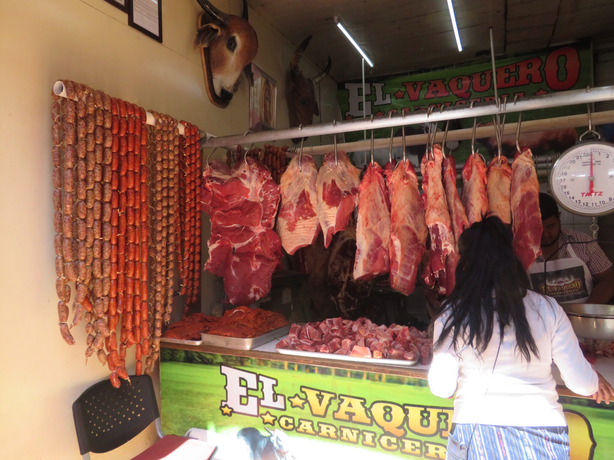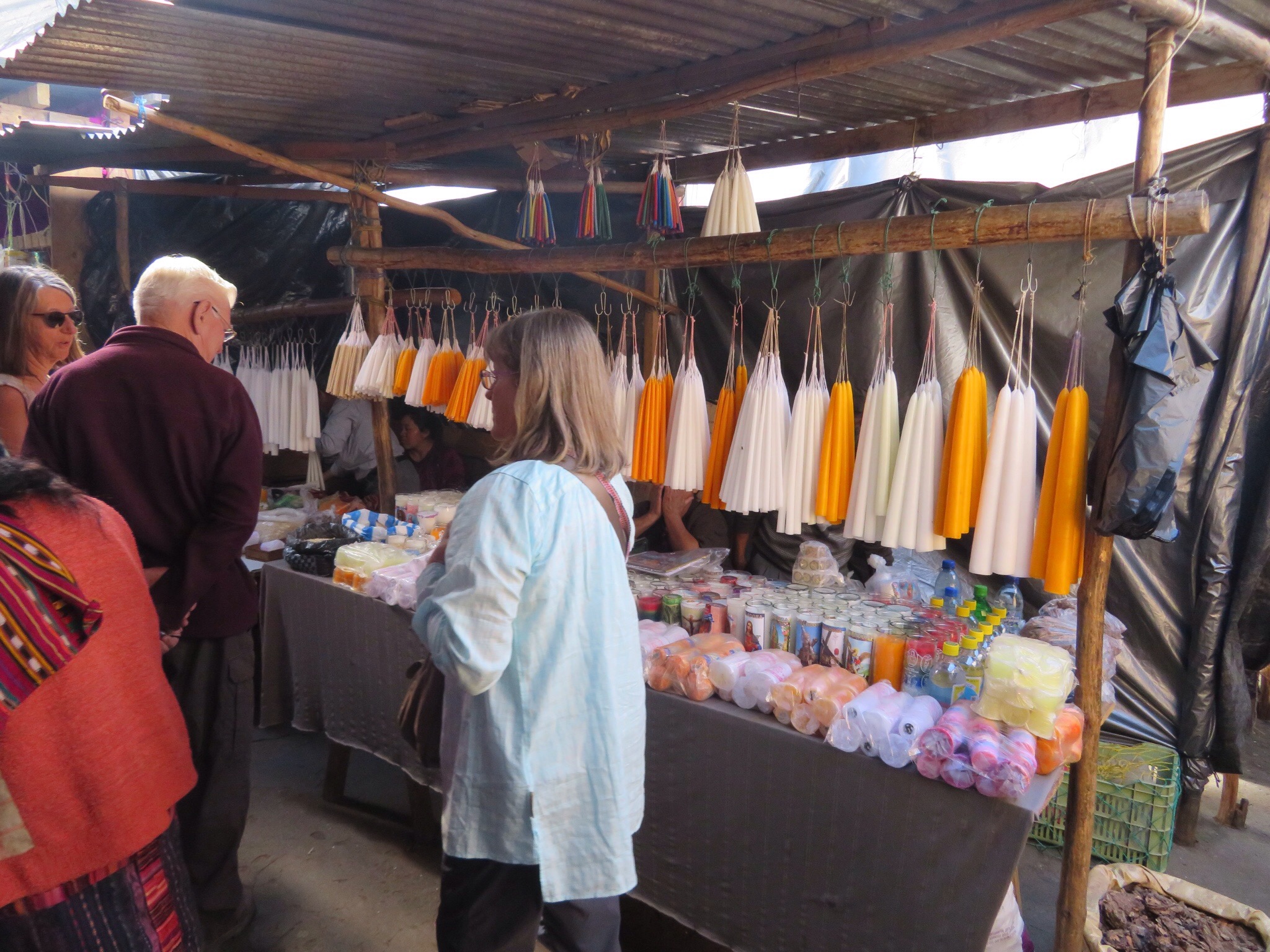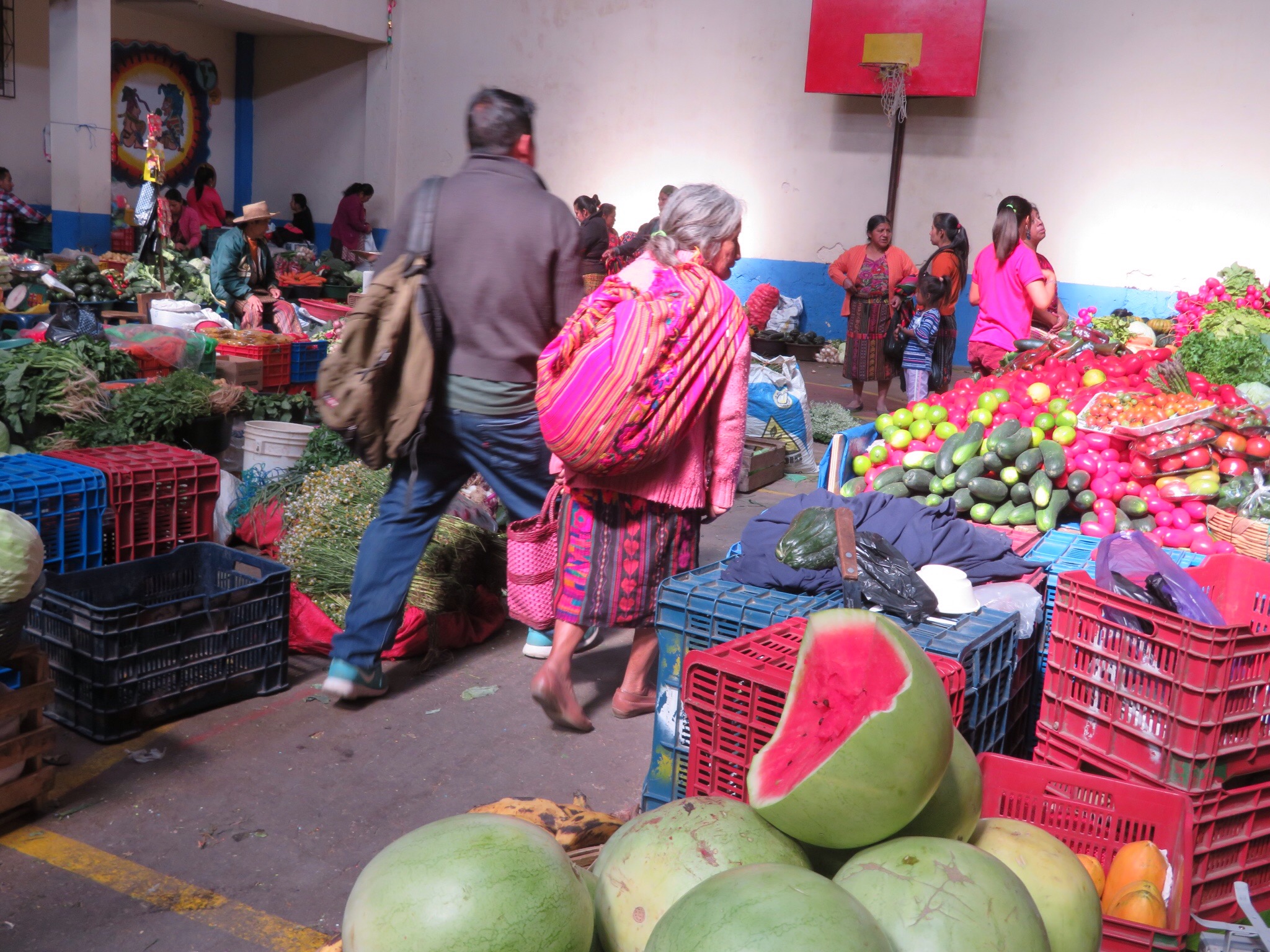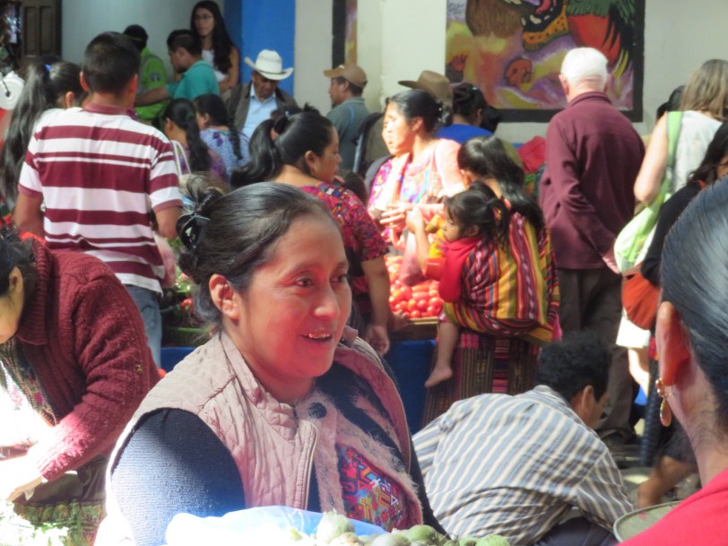 Our shopping in the Atitlan communities yielded works of artisan mastery that we can enjoy for a long time so our current shopping list is pretty short. But that is no reason to avoid a market. I find it hard to describe the sensation of weaving and bobbing through riotous color and aromas. Being of average US height, I know what it is like to be a giant in a land of 4 foot people. I can easily keep track of Peggy who is a good head taller that most of the folks in the market. But make no mistake, the place is crowded and humming with activity. Peggy complained of claustrophobia. I just enjoyed the jostle of humanity.
