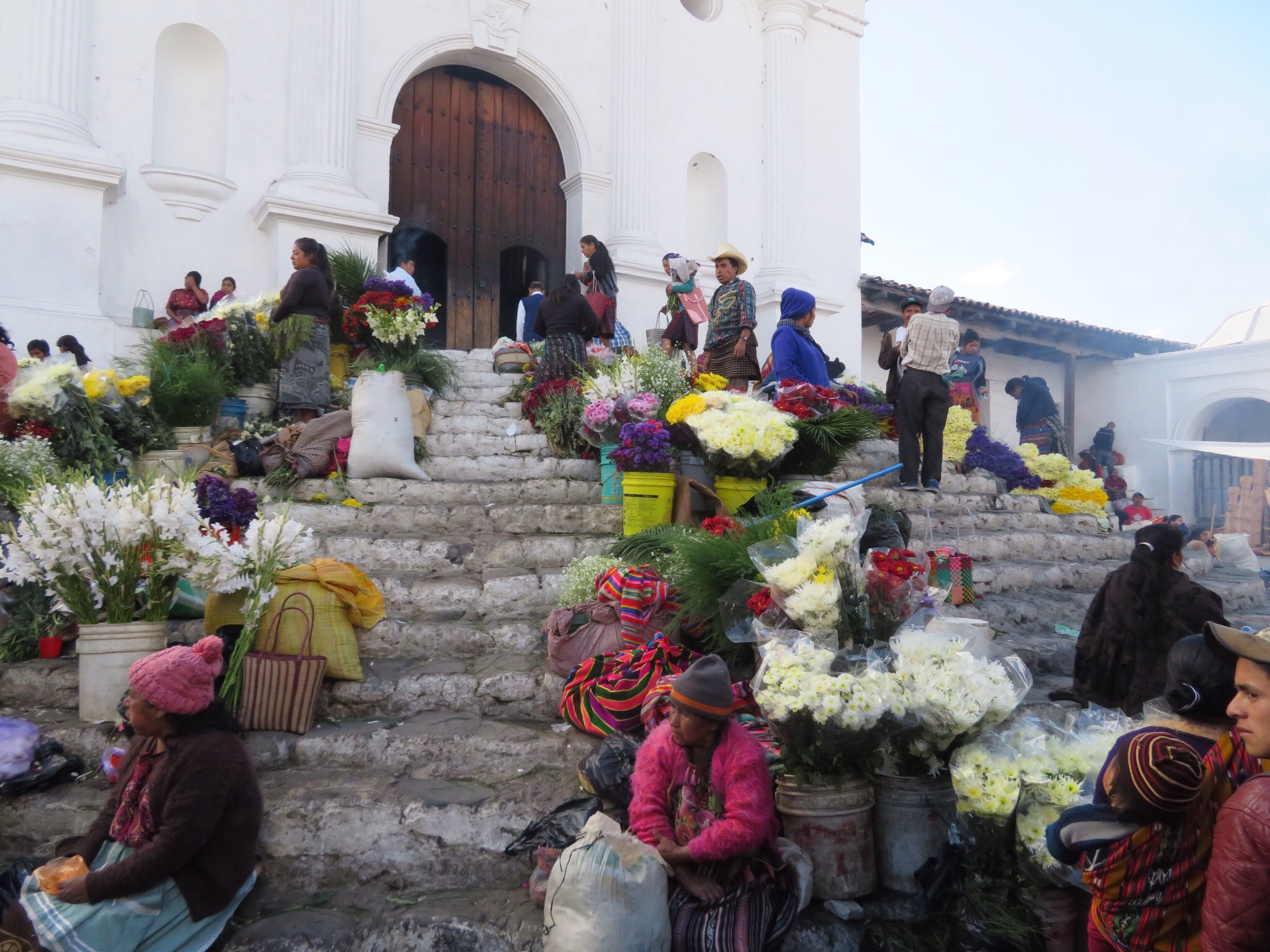 We left Lake Atitlan on schedule and posed for pictures on an overlook. The lake appears so calm from this height. We enjoyed a twisting but spacious ride in a half filled van. The hour and a half to Chichi, as I prefer to call Chichicastenango, was pleasant. Chichi is one of Guatemala’s most famous market towns and we were ready to seize the day.